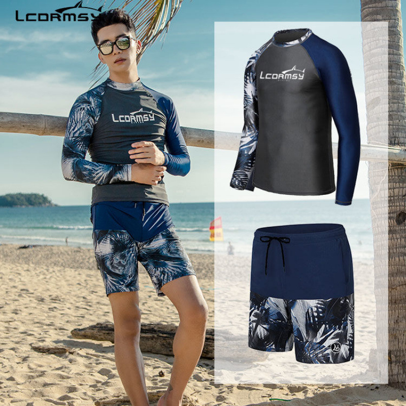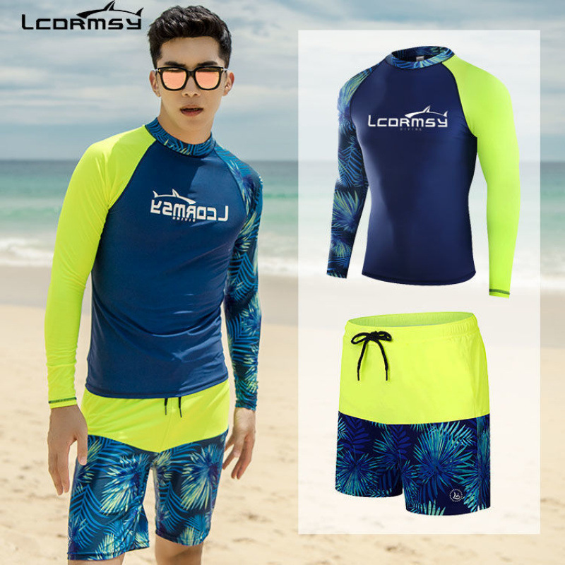 신형 분리형 수영복 세트 긴팔 루즈핏 상의 비키니 5부 바지 타이트한 성인 스포츠 다이빙복