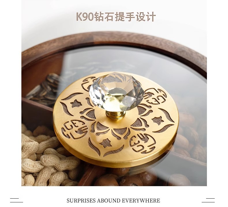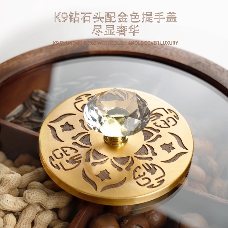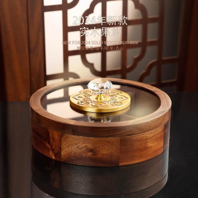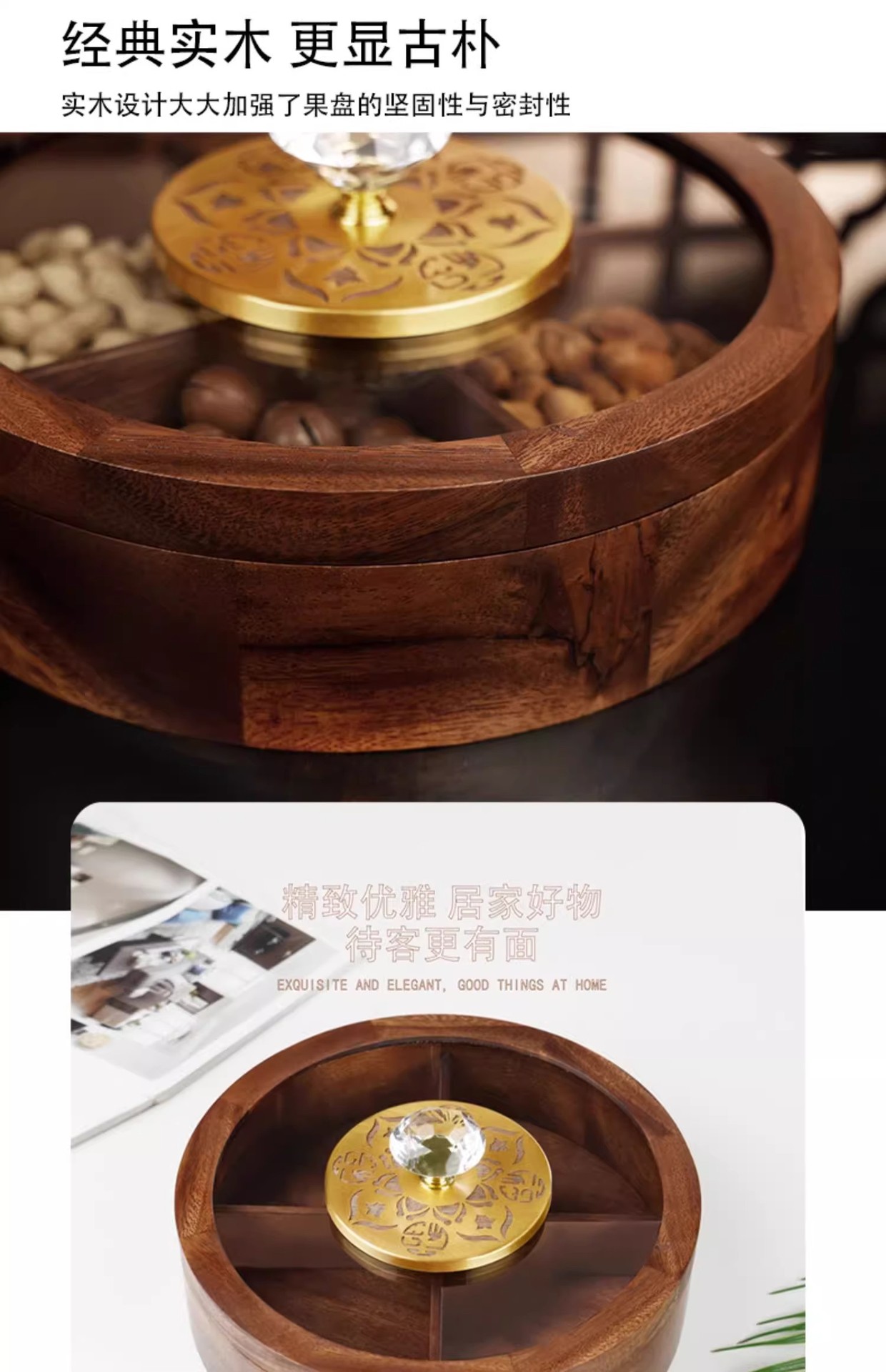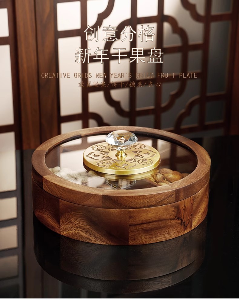 가정용 거실을 위한 새로운 중국 스타일의 Jinfu 단단한 나무 건조 과일 접시, 견과류 칸막이, 뚜껑이 있는 이중층 스낵 보관 상자스토어 가기