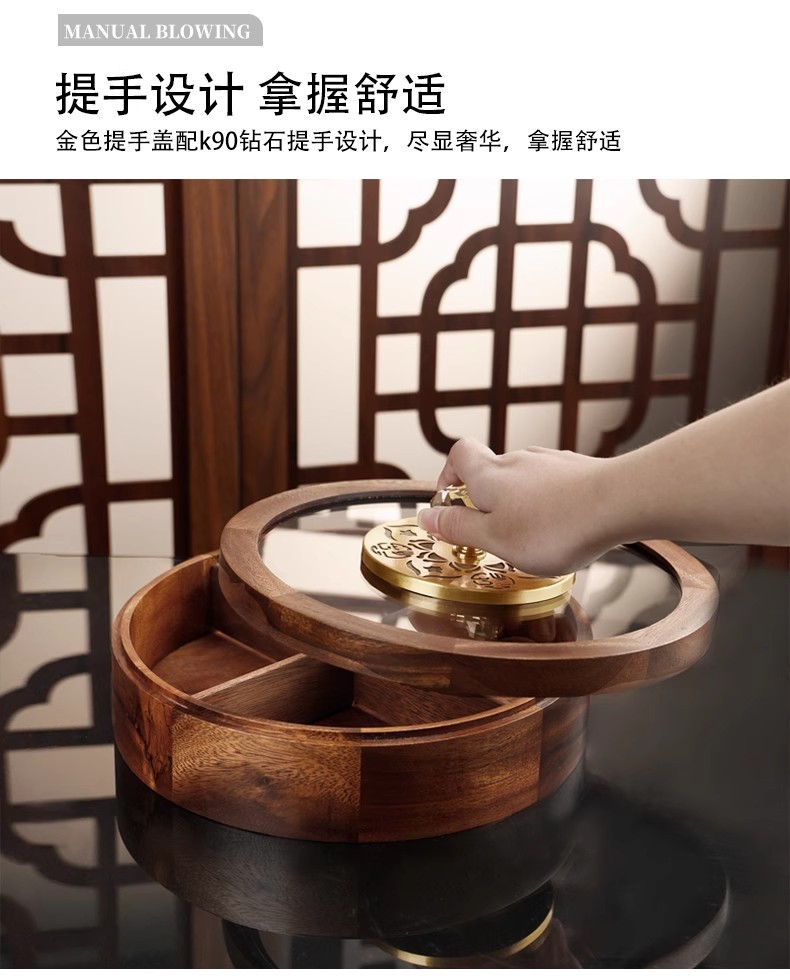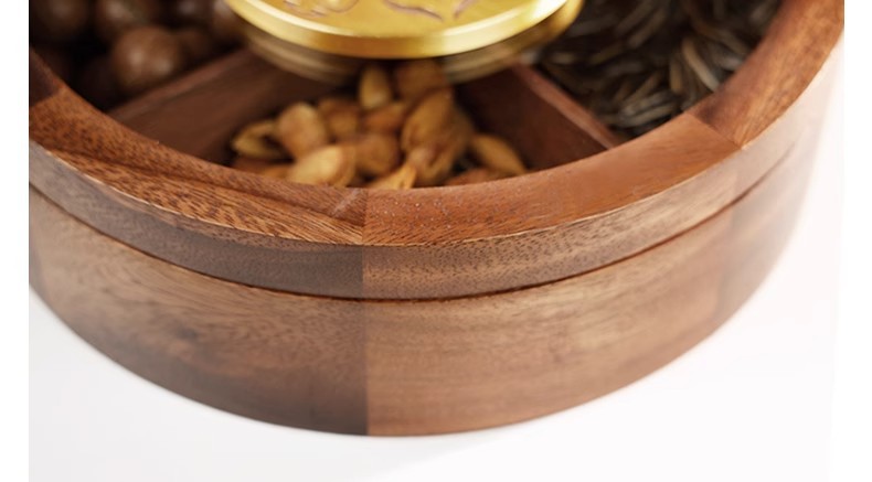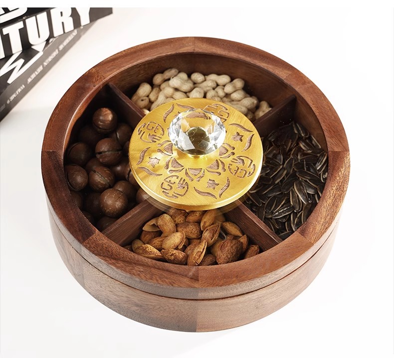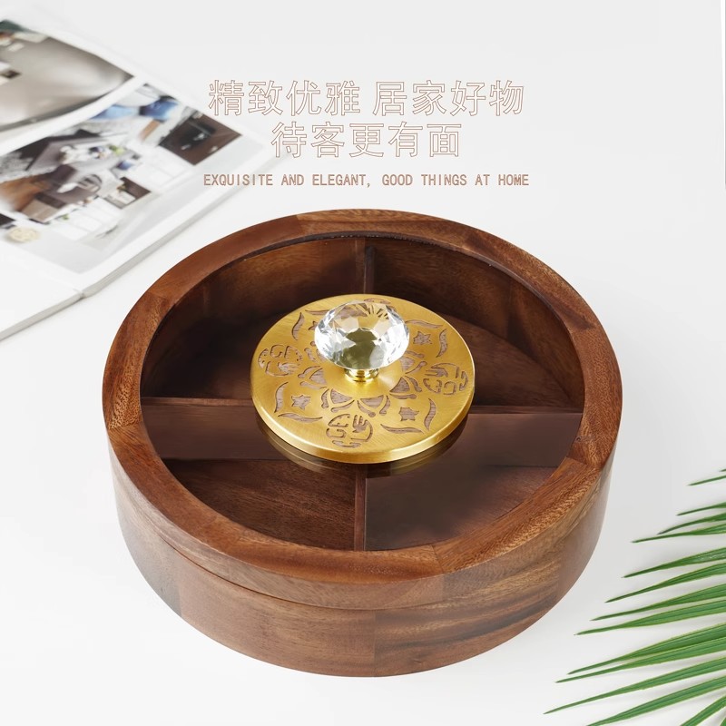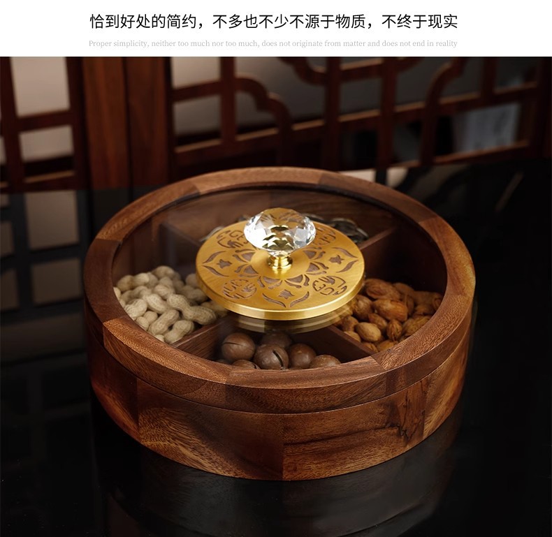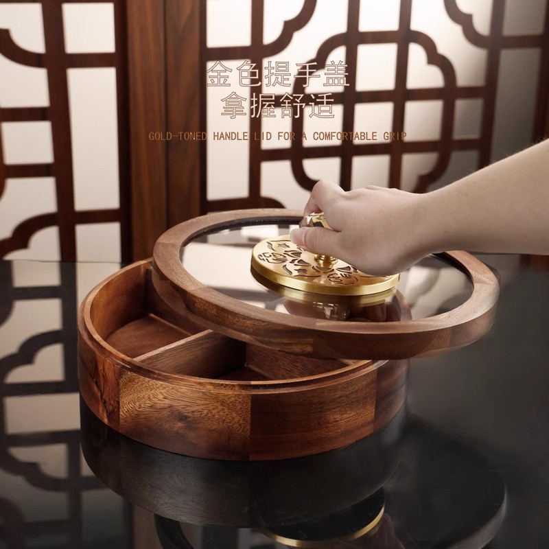 가정용 거실을 위한 새로운 중국 스타일의 Jinfu 단단한 나무 건조 과일 접시, 견과류 칸막이, 뚜껑이 있는 이중층 스낵 보관 상자
