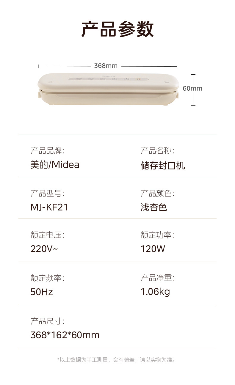 Midea 진공 밀봉 기계 소형 신선 식품 포장 기계 밀봉 기계 완전 자동 플라스틱 밀봉 기계 MJ-KF21