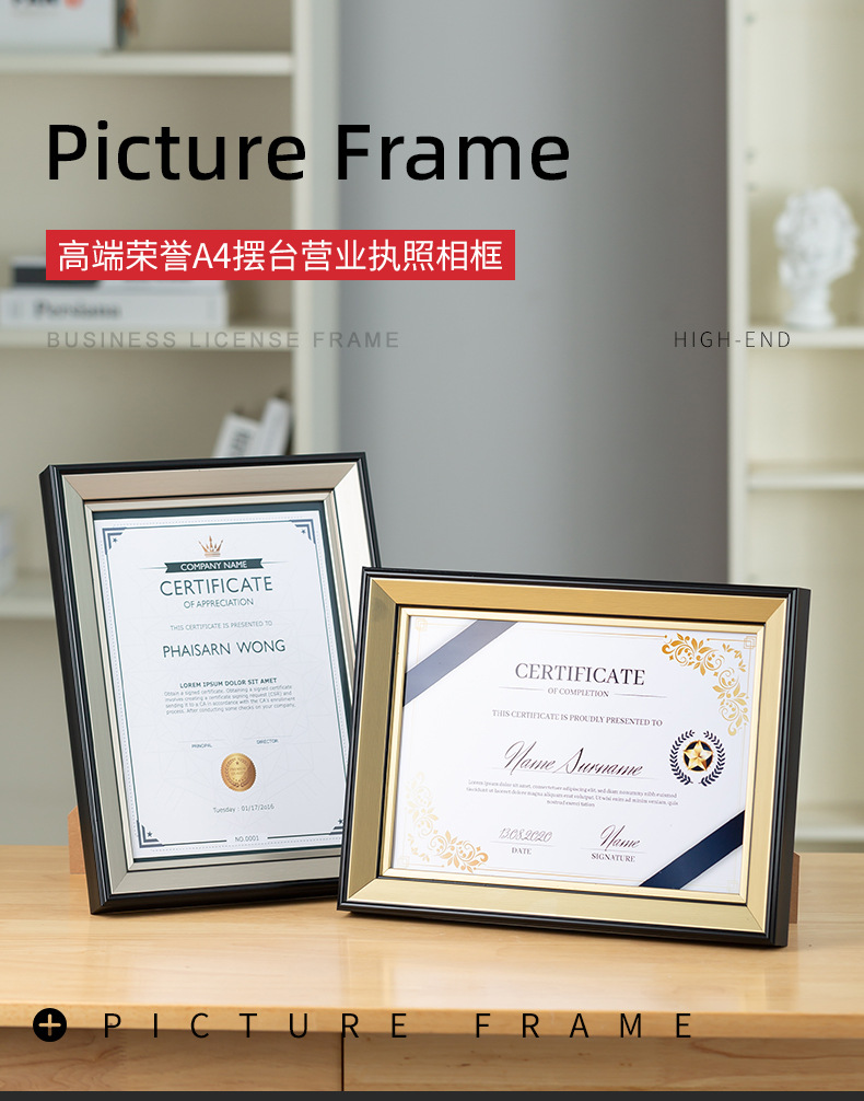 국경 간 A3 사업 라이센스 프레임 원본 고급 명예 인증서 프레임 a4 사진 프레임 테이블 인증서 디스플레이 벽걸이스토어 가기
