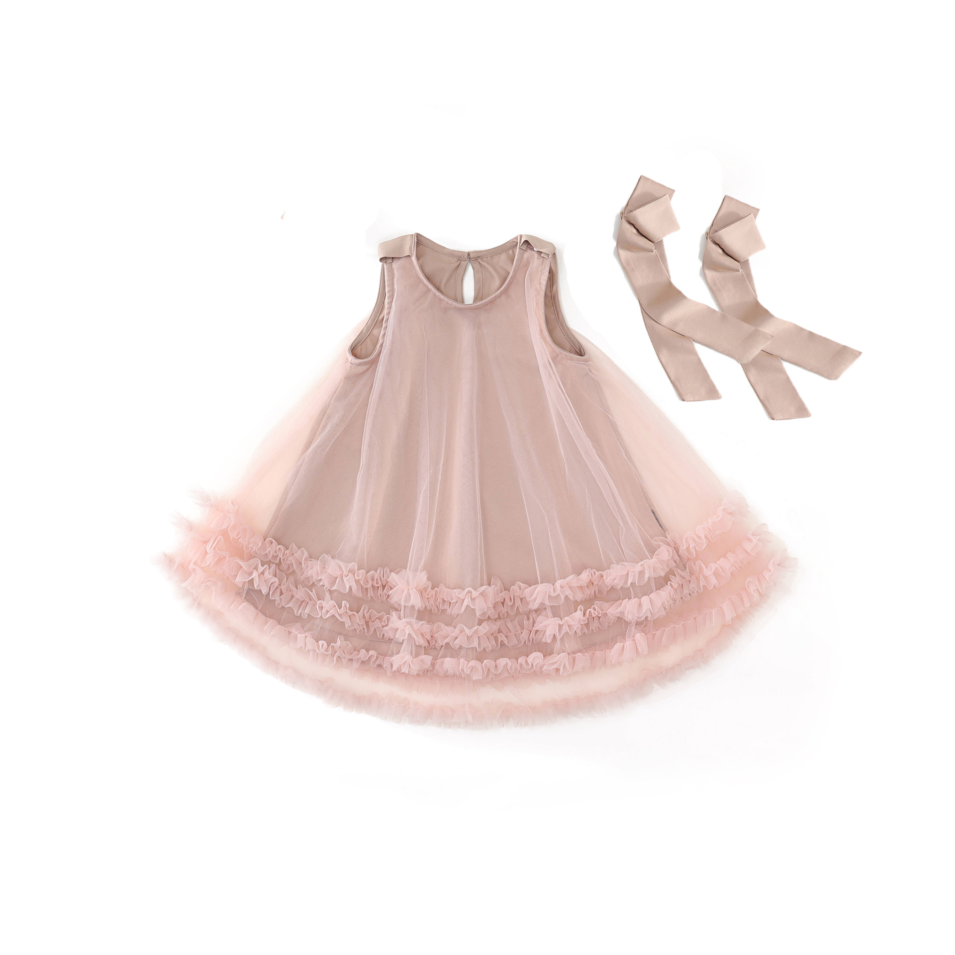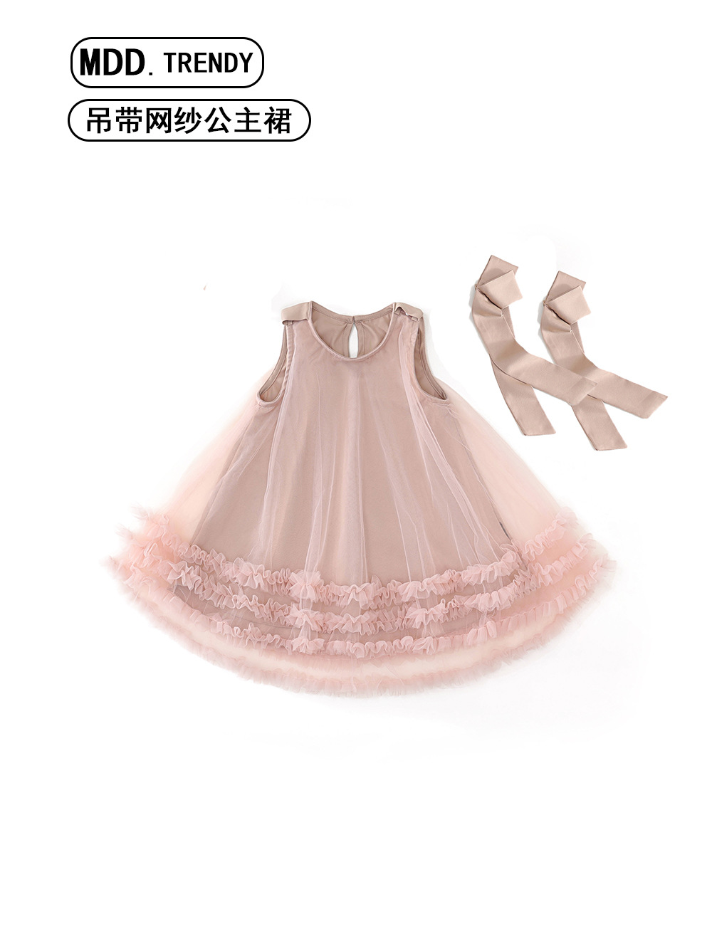 MDD 여자 드레스 여름 2025 새로운 스타일 어린이 큰 활 메쉬 공주 드레스 생일 드레스