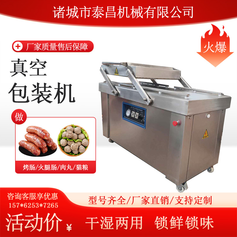 육포 이중 챔버 진공 포장기, 구운 닭고기 및 구운 오리 포장기, 습식 및 건식 건조 과일 및 해산물 진공 밀봉기