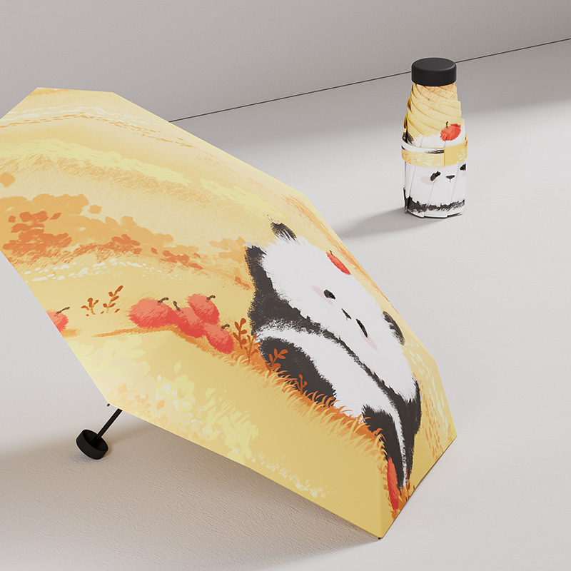 만화 팬더 우산 어린이 우산 고급스러운 여성 태양 보호 우산 ins 틈새 오리지널 접는 태양 우산