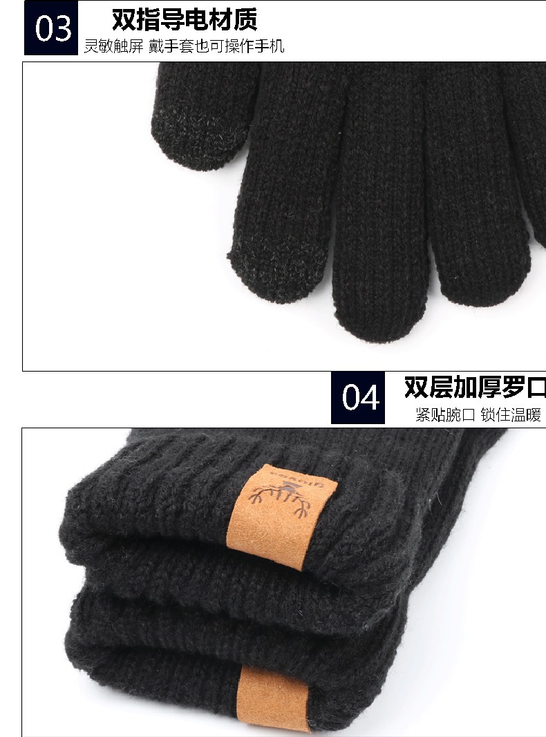 2025년 크로스보더 아마존 터치스크린 장갑 남성용 겨울 두꺼운 이중층 보온 니트 공장 도매 크로스보더 인기 상품스토어 가기