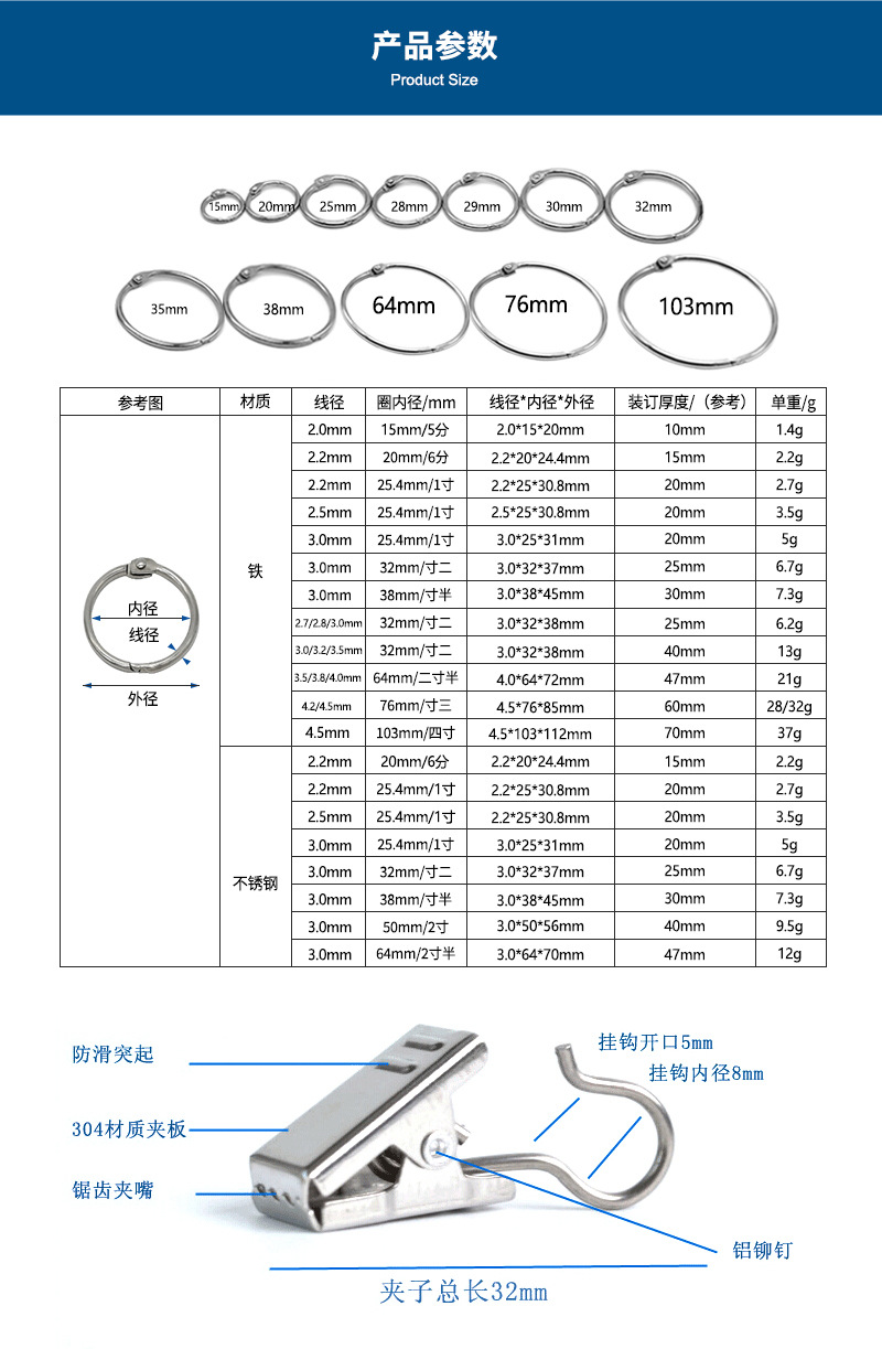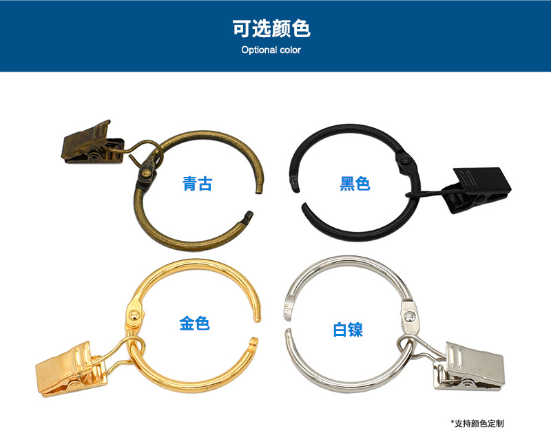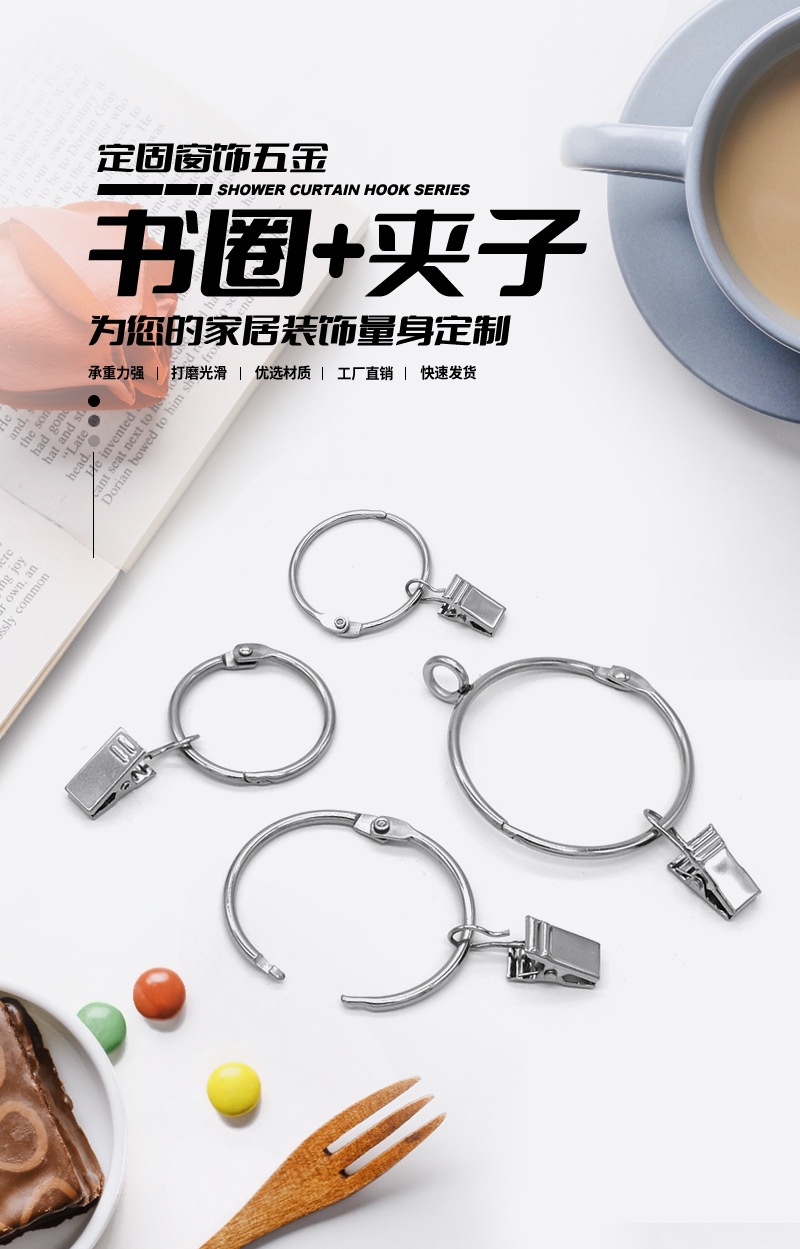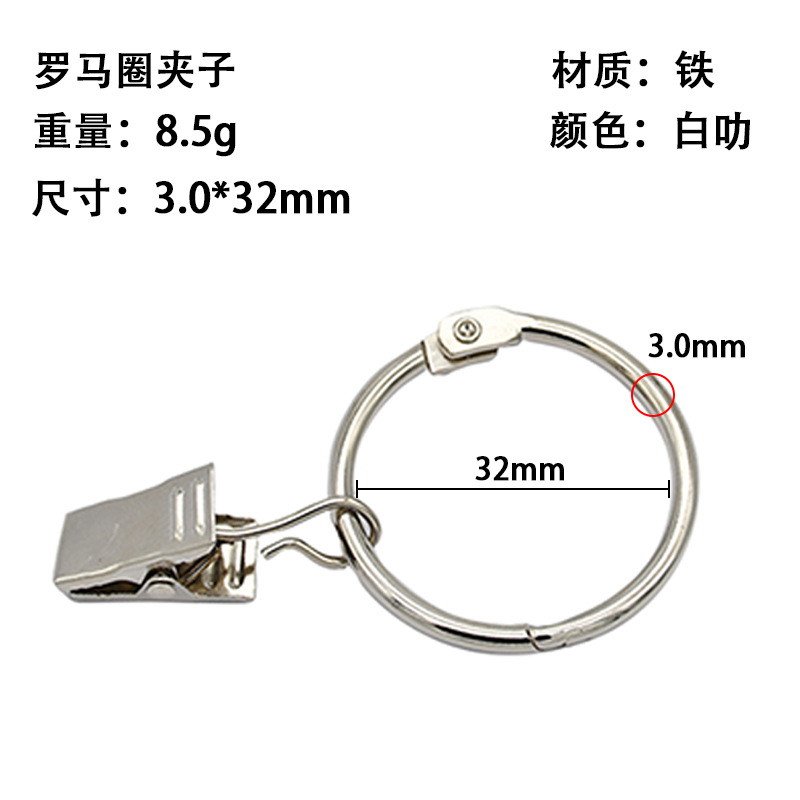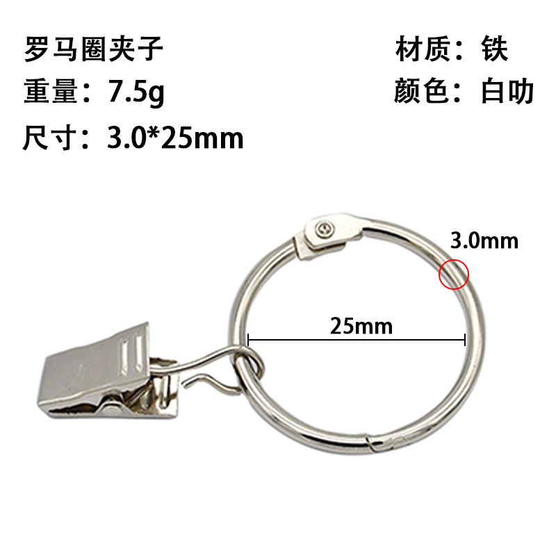 源头工厂活动开口罗马圈环窗帘夹子 现货金属窗帘配件窗帘环