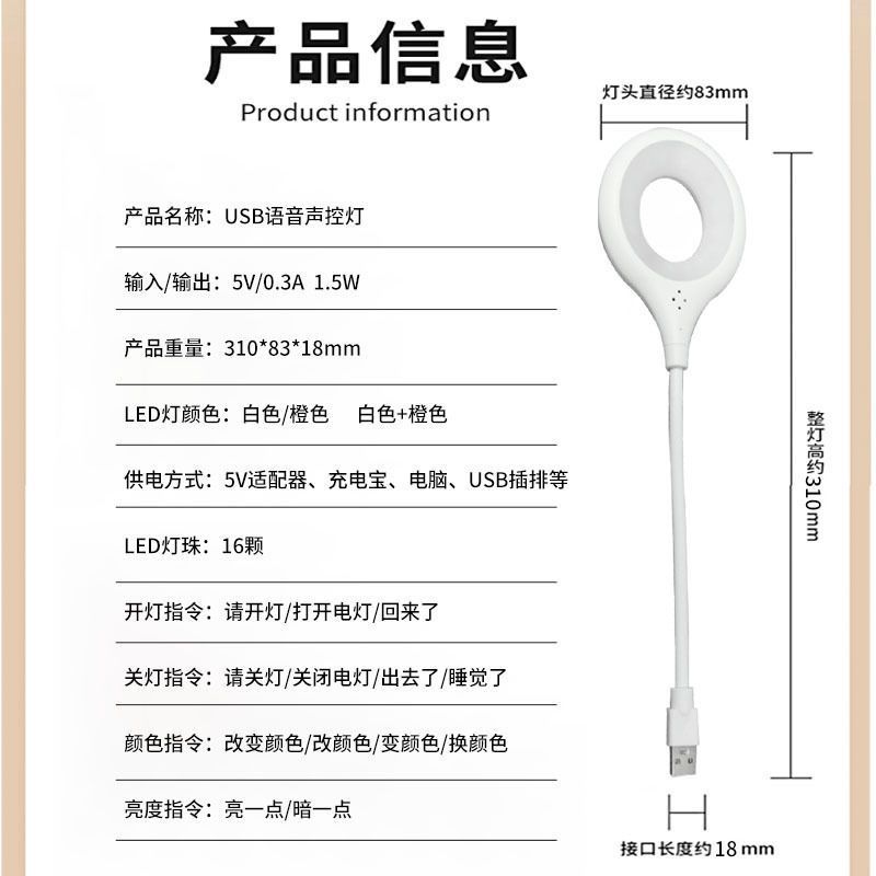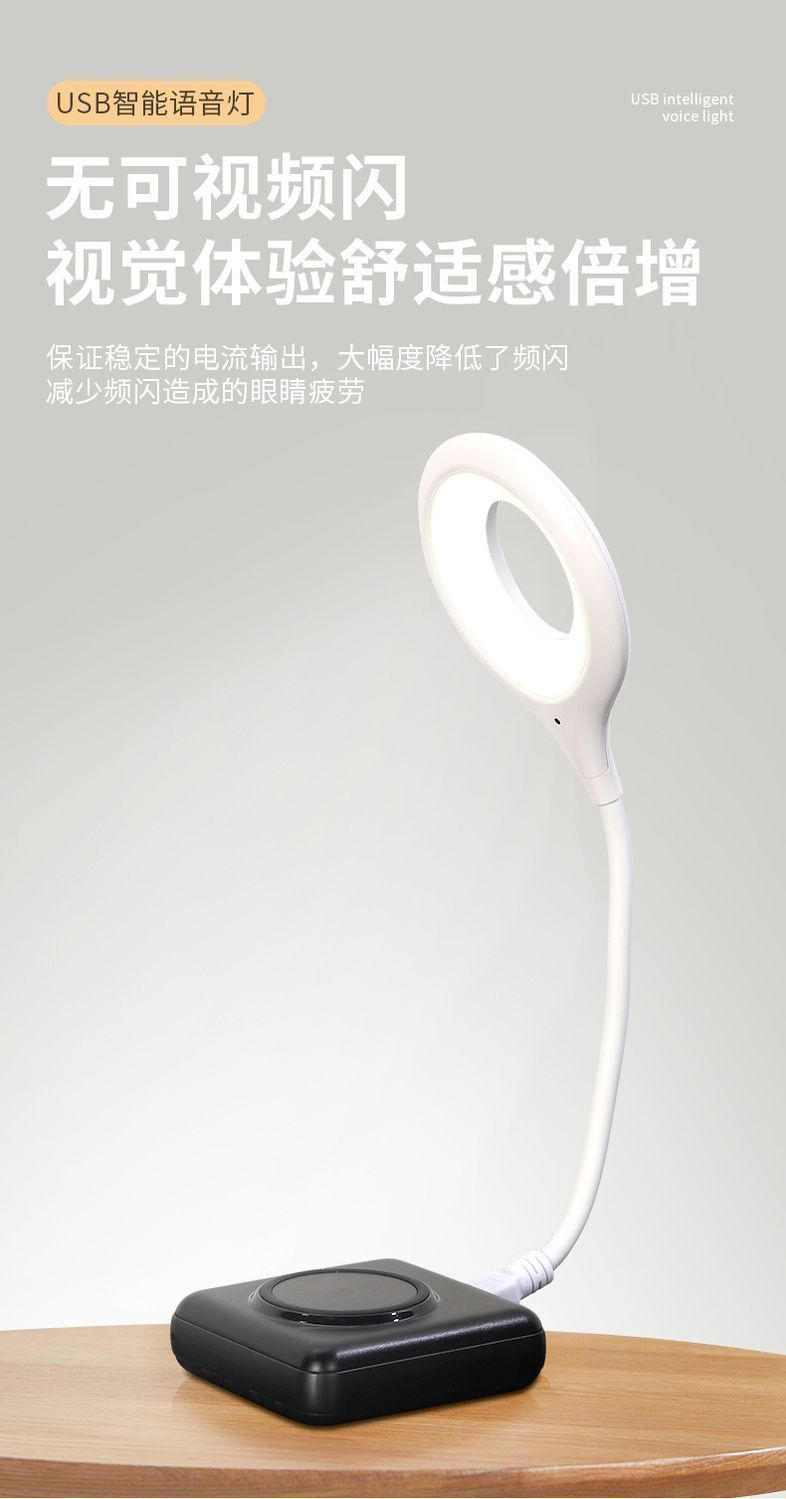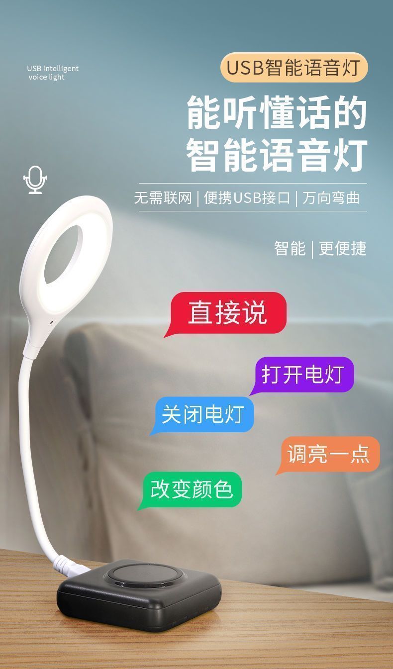 지능형 음성 제어 야간 조명 3색 조정 USB 인터페이스 눈 보호 테이블 램프 노인과 어린이가 밤에 일어날 수 있는 음성 제어 야간 조명