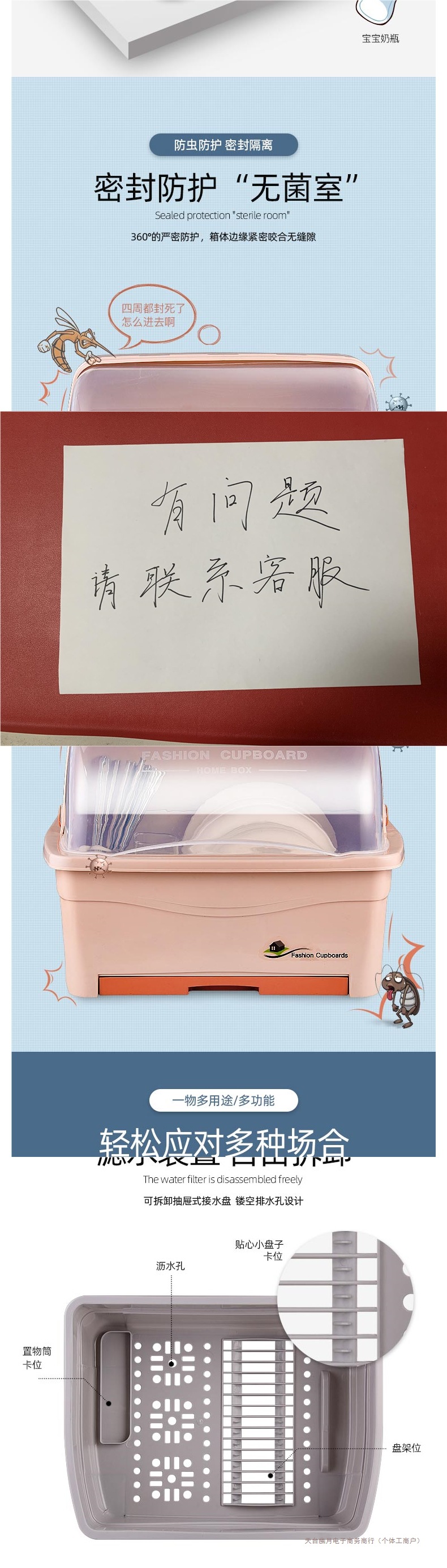 뚜껑이 있는 주방 초대형 찬장, 플라스틱 배수구, 가정용 그릇 상자, 접시 밀봉 상자, 그릇 및 젓가락 보관함