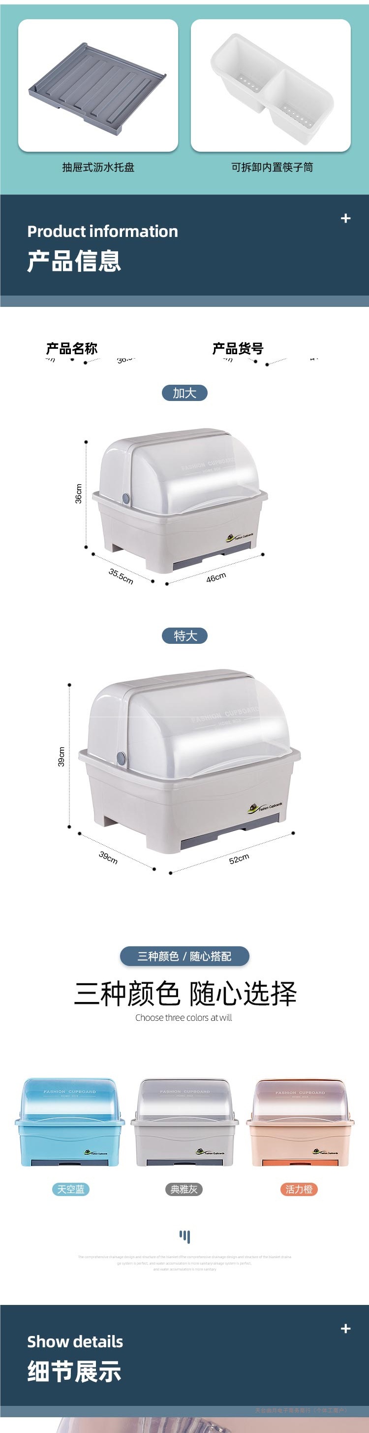 뚜껑이 있는 주방 초대형 찬장, 플라스틱 배수구, 가정용 그릇 상자, 접시 밀봉 상자, 그릇 및 젓가락 보관함스토어 가기