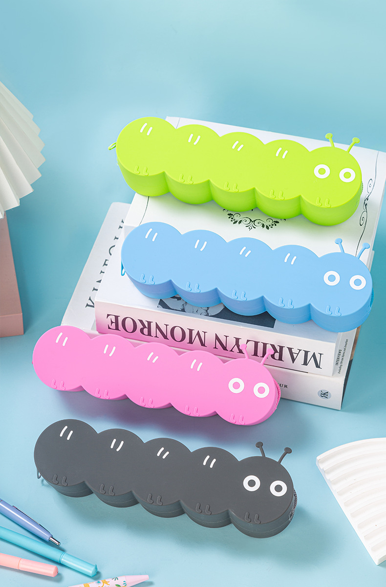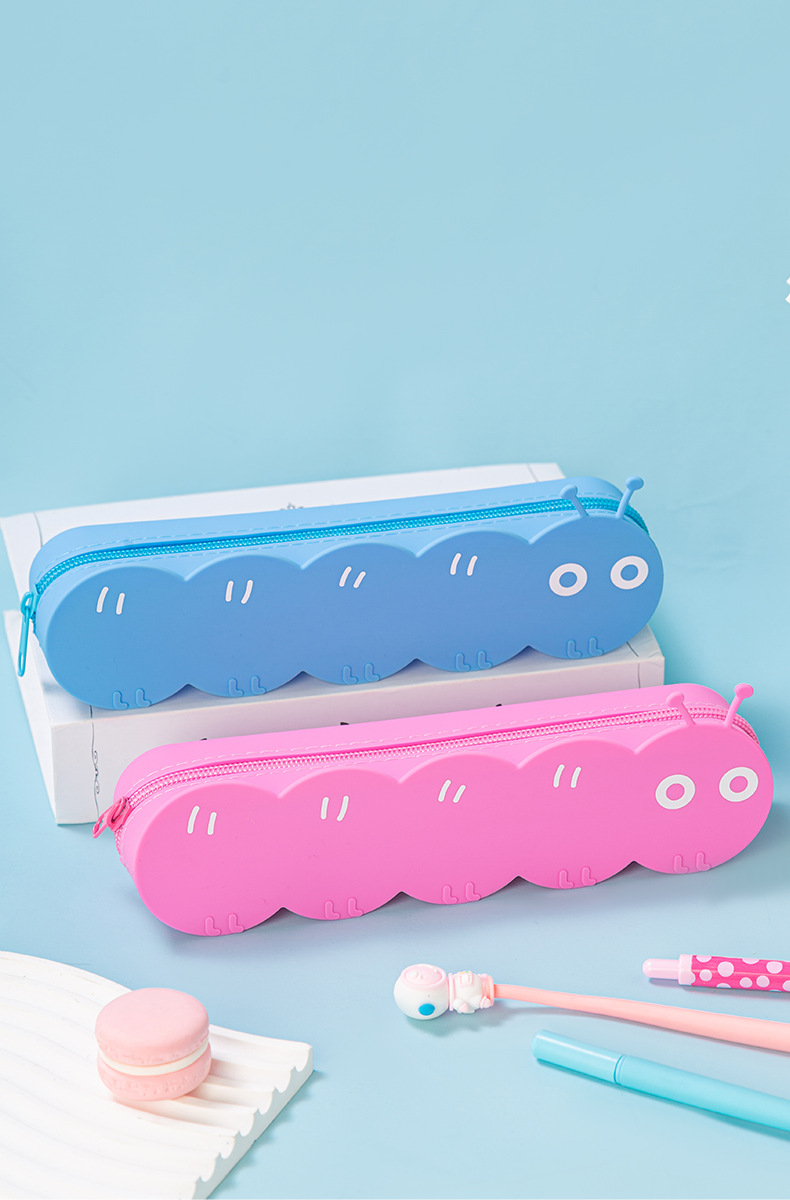 새로운 실리콘 연필 가방 애벌레 간단한 문구 연필 가방 동물 귀여운 초등학생 고가치 연필 가방스토어 가기