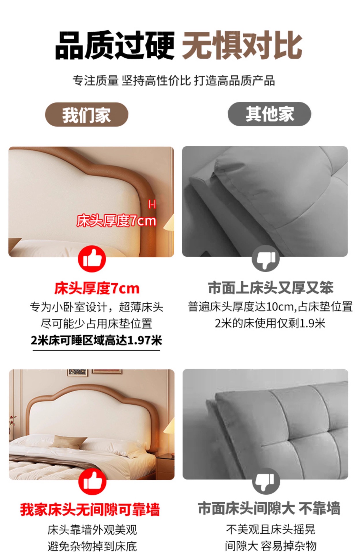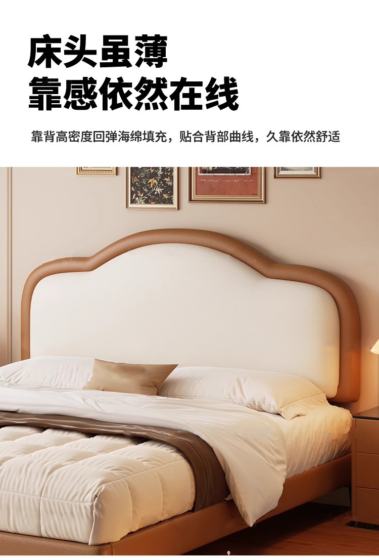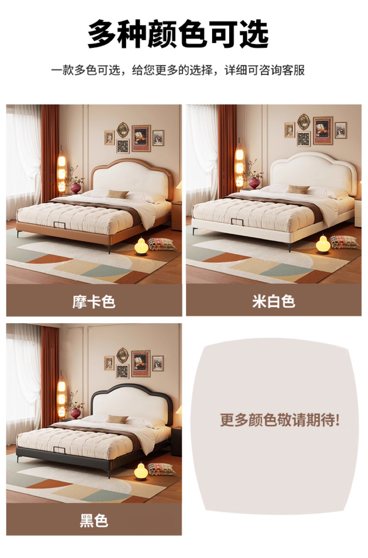 프렌치 크림 스타일 초박형 침대 옆 침대, 마스터 침실, 고급스럽고 우아한 소프트 웨딩 침대, 소형 아파트 더블 침대 웨딩 침대스토어 가기