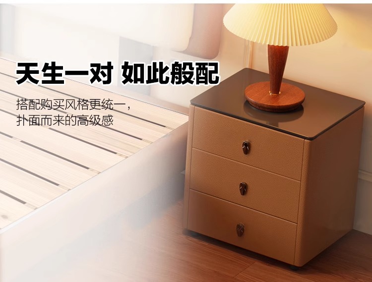 • 가죽 침대 + 벨벳 드림 슈 척추 매트리스 + 침대 옆 테이블 * 1