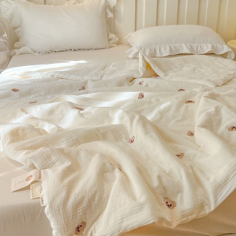 Q3YA 산모 및 유아용 더블 레이어 거즈 콩 여름 이불 여름 냉각 이불 기계 세탁 가능 여름 에어컨 이불 학생 기숙사 싱글 얇은