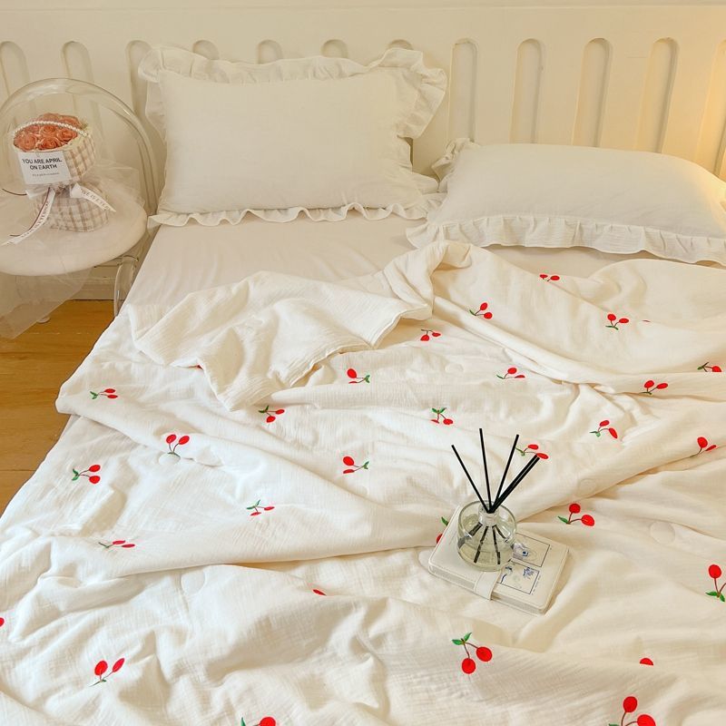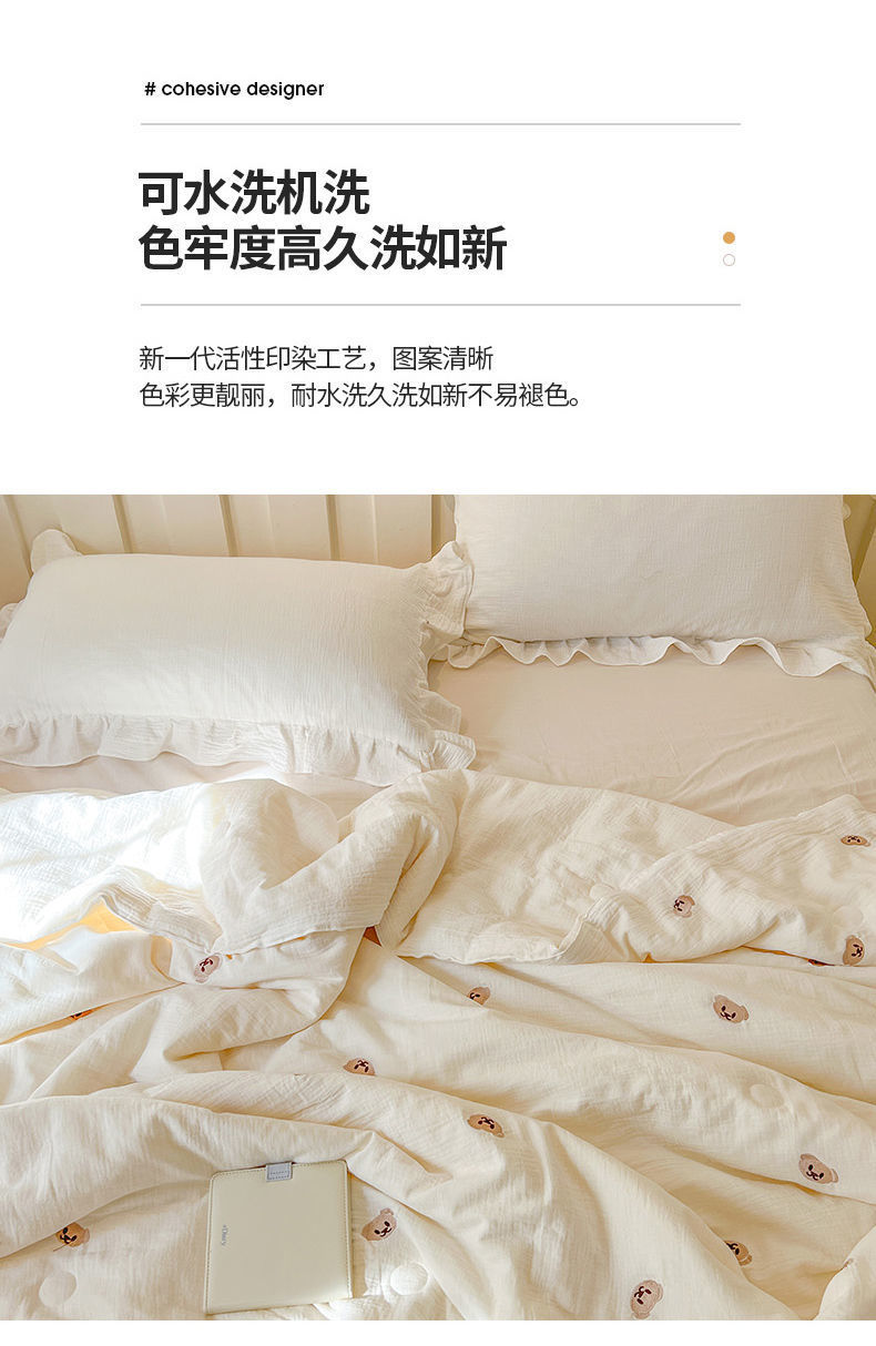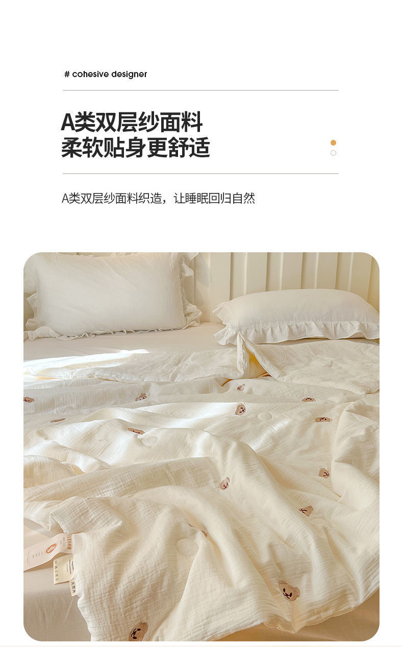 Q3YA 산모 및 유아용 더블 레이어 거즈 콩 여름 이불 여름 냉각 이불 기계 세탁 가능 여름 에어컨 이불 학생 기숙사 싱글 얇은스토어 가기