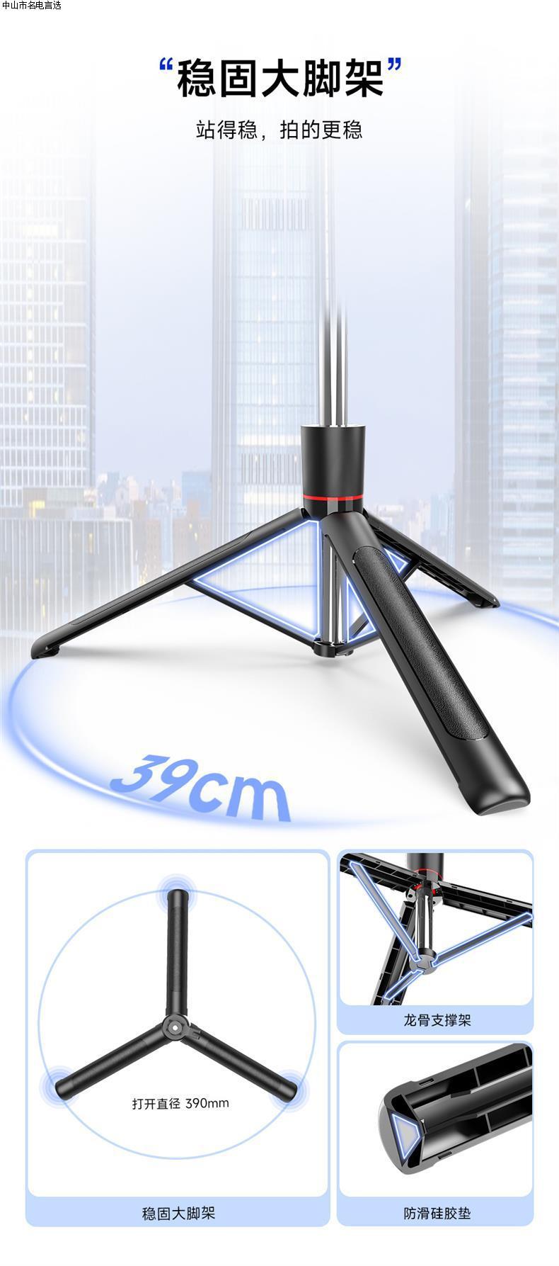 • F01 [블랙 듀얼 라이트 버전] 67CM 스테인레스 스틸 폴 + 블루투스 리모컨 + 듀얼 뷰티 필 라이트