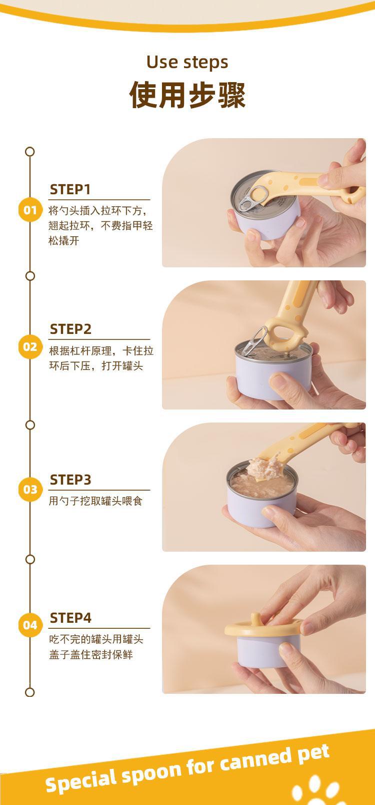 • 노란색 [숟가락]으로 캔을 쉽게 열 수 있습니다.