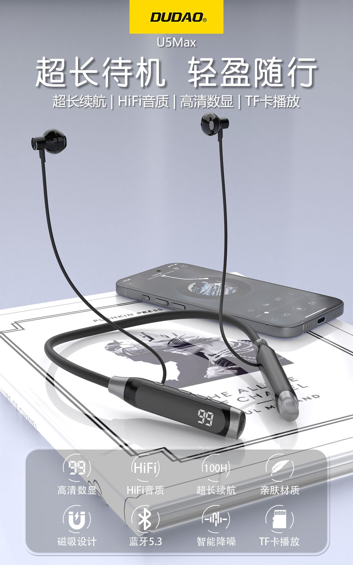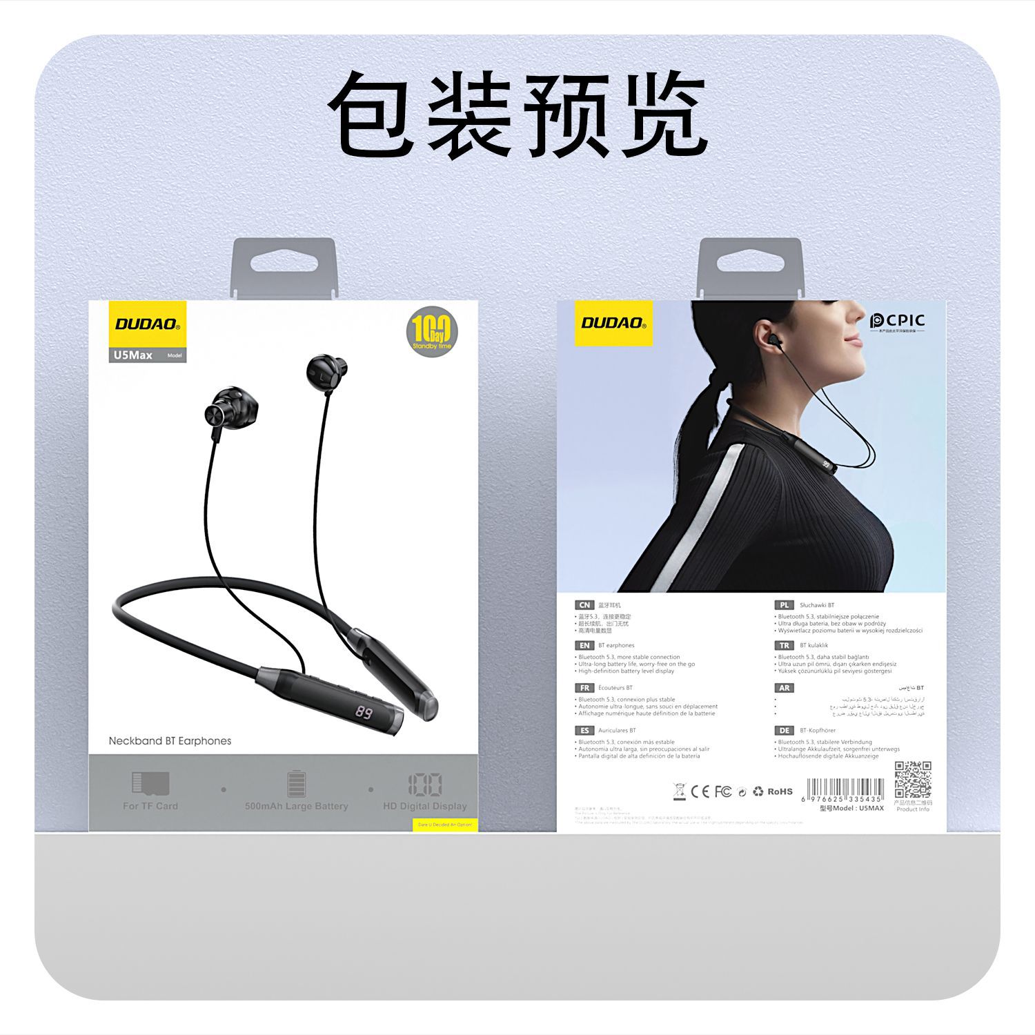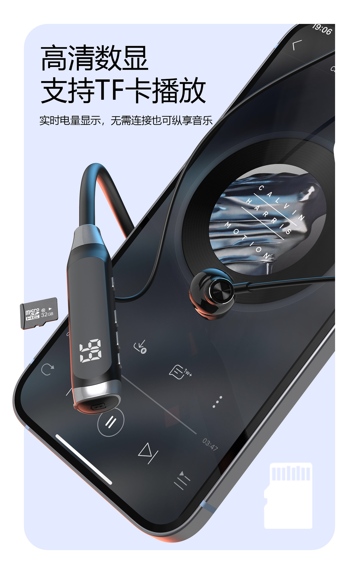 ·500mAh,超大电池,100H小时音乐播放,100天超长待机。
