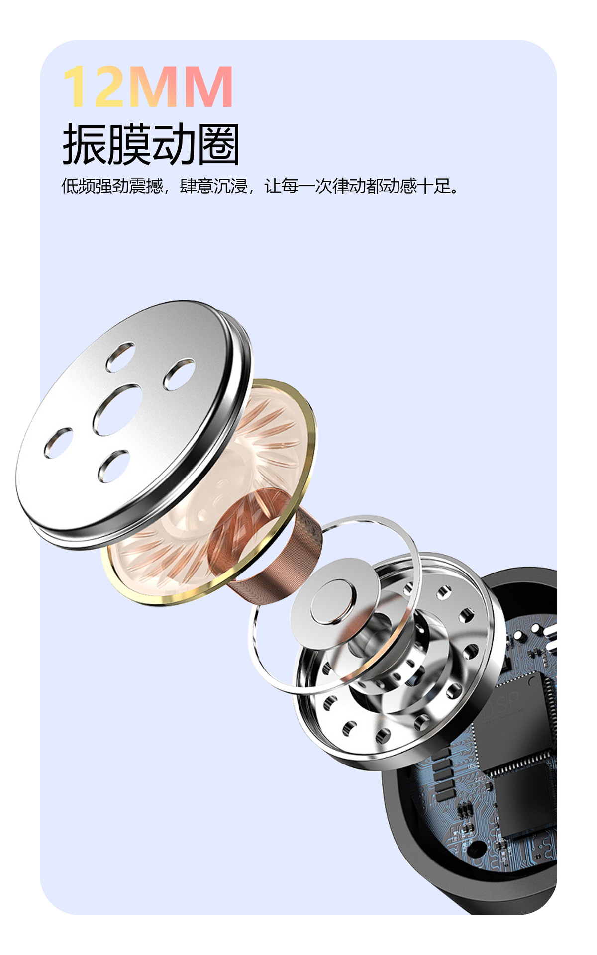 ·采用12mm动圈喇叭,HiFi音质,智能降噪