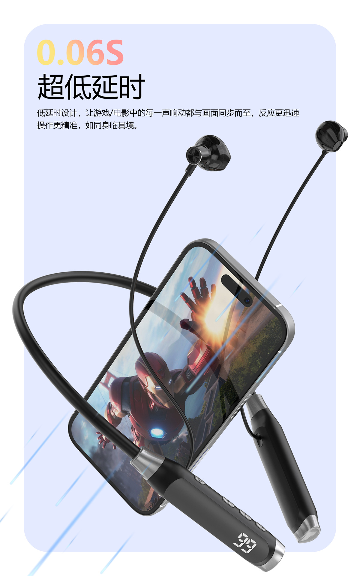 ·精准电量数显,采用最新蓝牙5.3方案,带来更低功耗与更高稳定性,强抗干扰。低延迟,音画同步