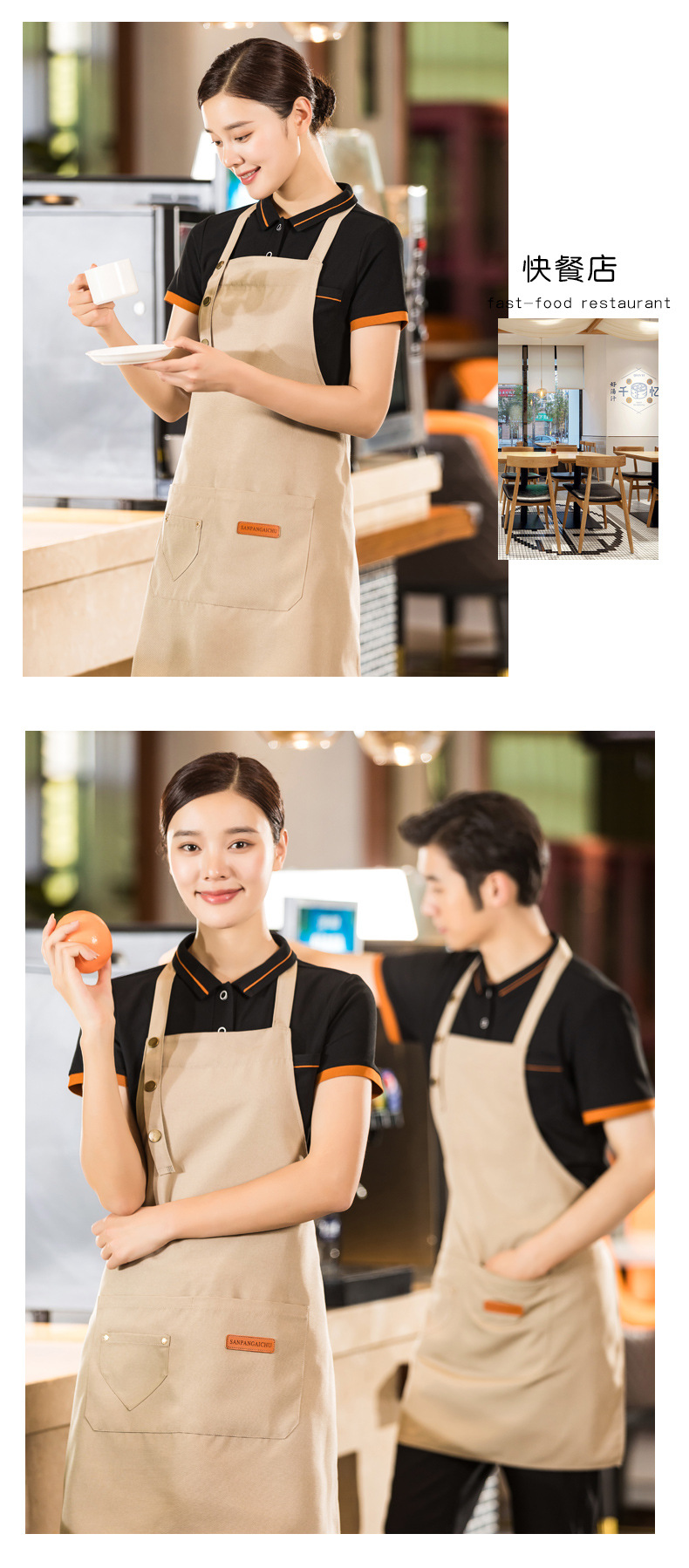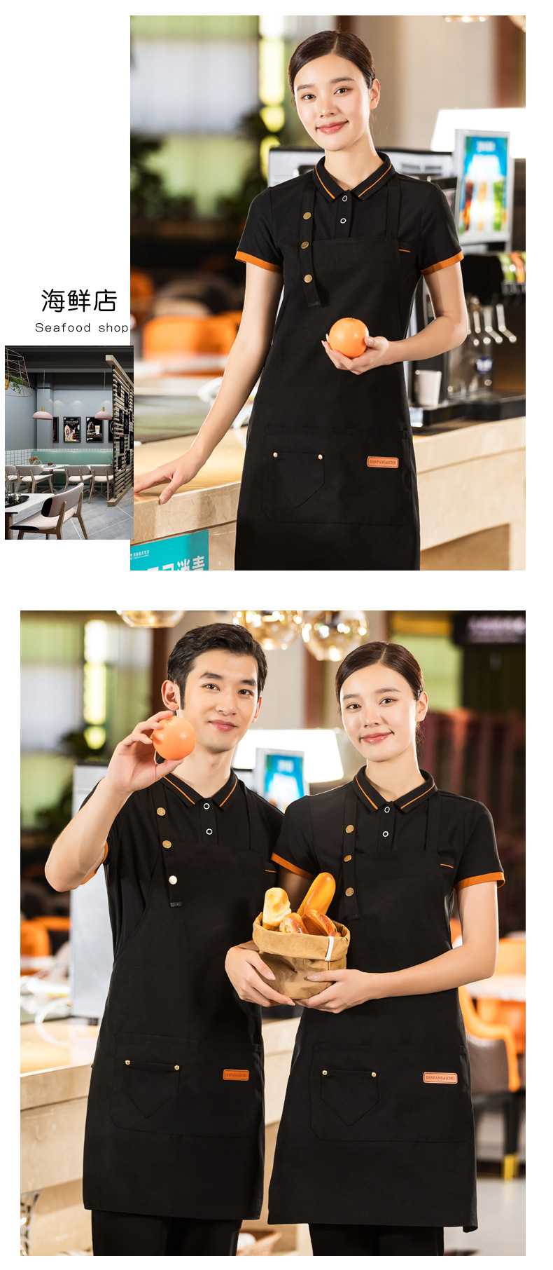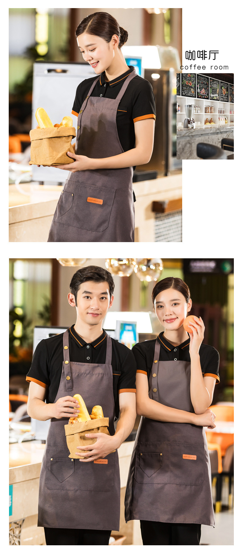 밀크티샵용 앞치마, 프린트가 있는 특별 웨이터, 베이킹 홀넥 풀오버 앞치마, 작업복, 남녀공용 카페 케이터링