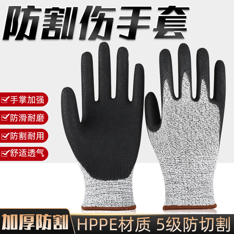 5단계 절단 방지 니트릴 반투명 절단 방지 절단 방지 반투명 절단 방지 고무 장갑, 건설 현장 작업을 위한 미끄럼 방지 및 내유성