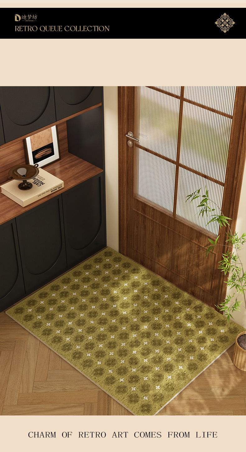 드롭 배송 프랑스 복고풍 녹색 실크 루프 바닥 매트, 얼룩 방지 입구 문 바닥 매트, 미끄럼 방지 입구 문 매트스토어 가기