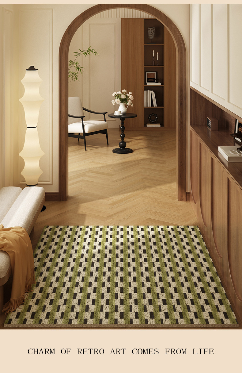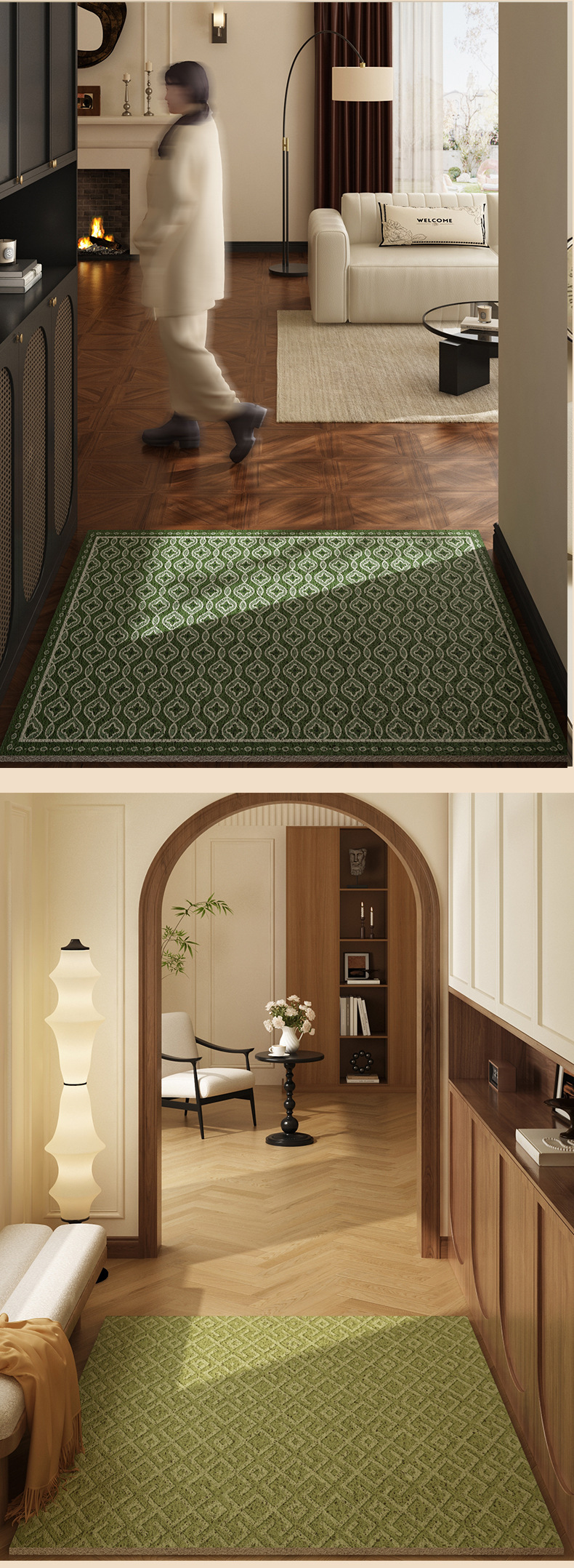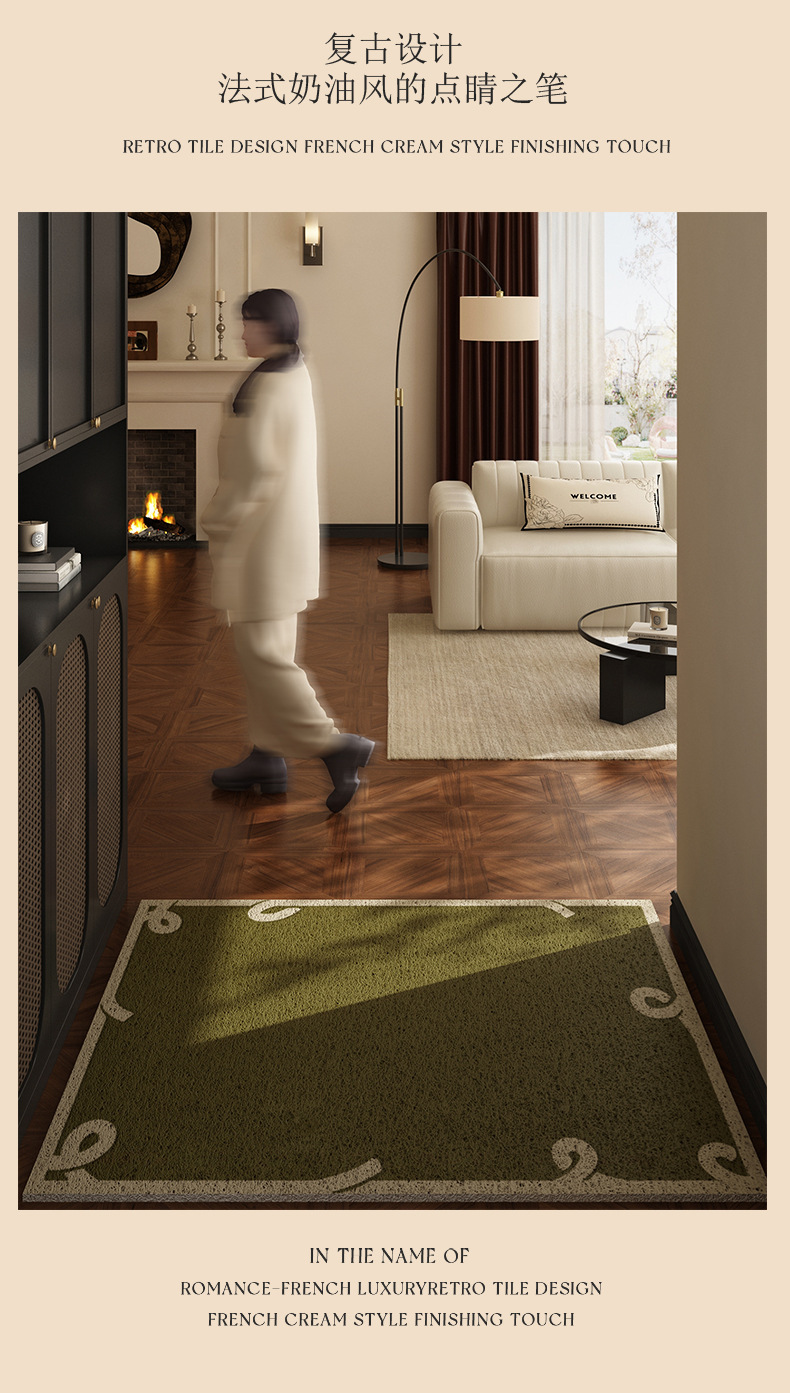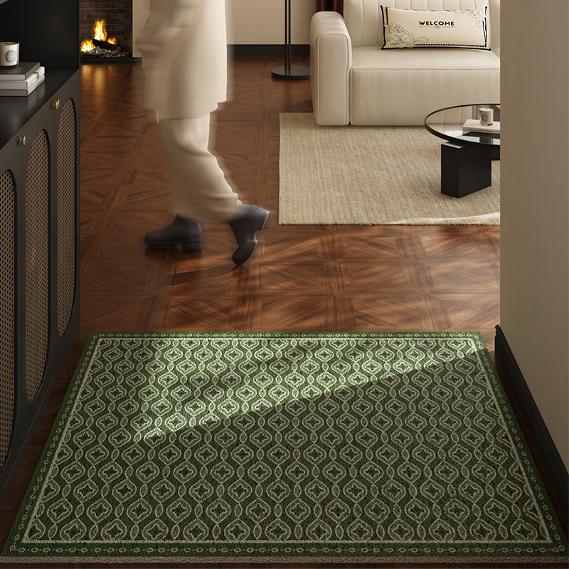 드롭 배송 프랑스 복고풍 녹색 실크 루프 바닥 매트, 얼룩 방지 입구 문 바닥 매트, 미끄럼 방지 입구 문 매트