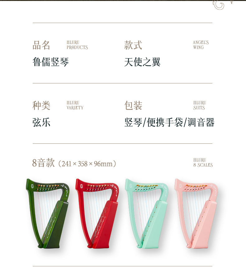Luru 하프 8현 15현 19현 전문가급 하프 소형 하프 악기 학습하기 쉽고 휴대성이 뛰어난 초보자 도매
