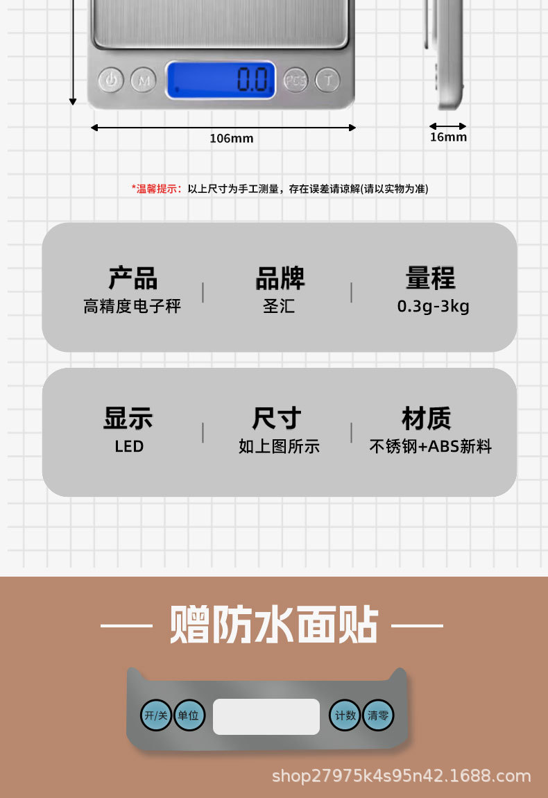 • [충전식 모델] 3kg/0.1g 스테인리스 판