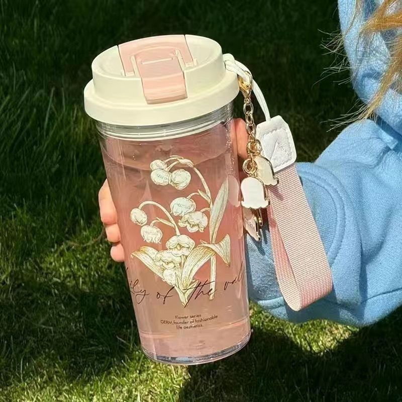 소녀들을 위한 새로운 물컵, 고급스러운 밀짚컵, 휴대용 커피컵, 학교용 대용량 플라스틱 컵, 고온 저항