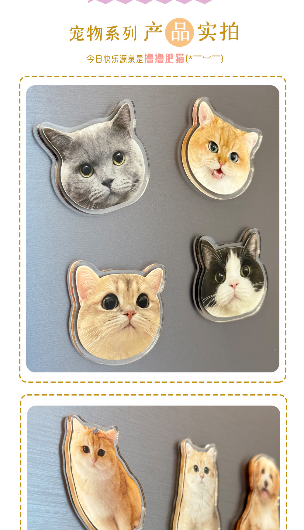 사진으로 맞춤 제작된 아크릴 냉장고 자석, 애완동물, 새끼 고양이, 개, 입체적인 고급 연자성 냉장고 자석스토어 가기