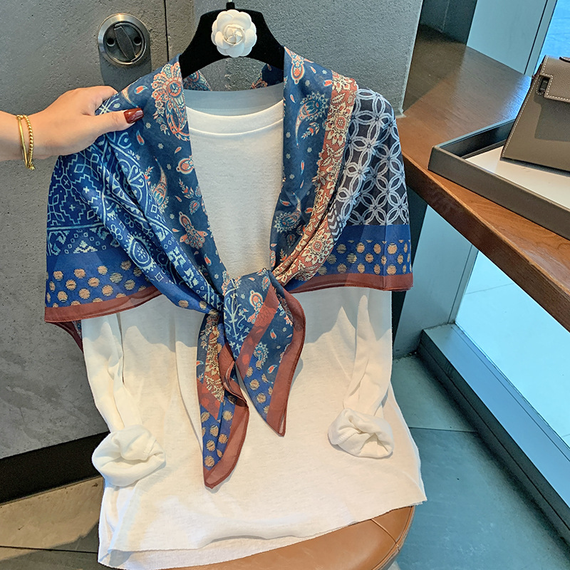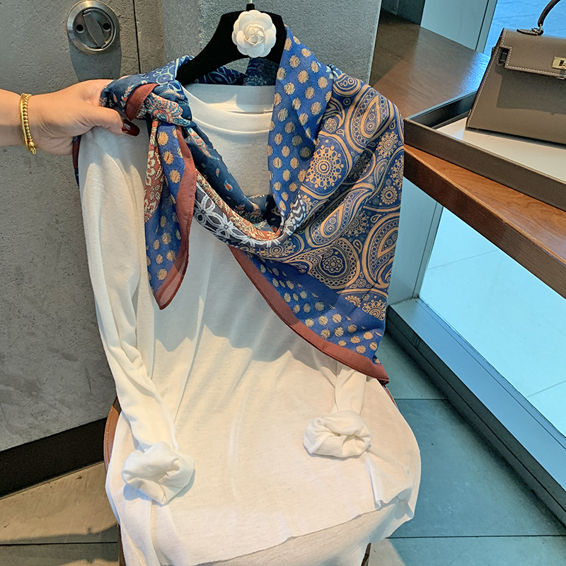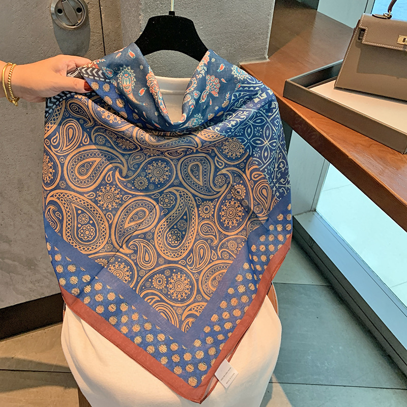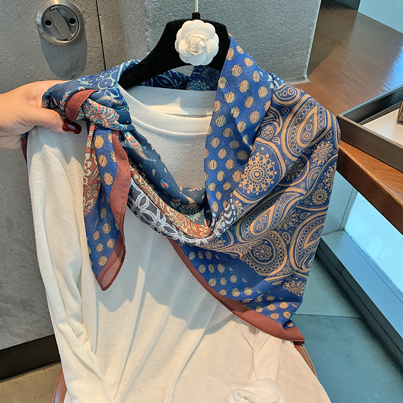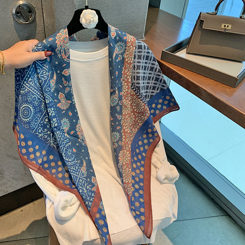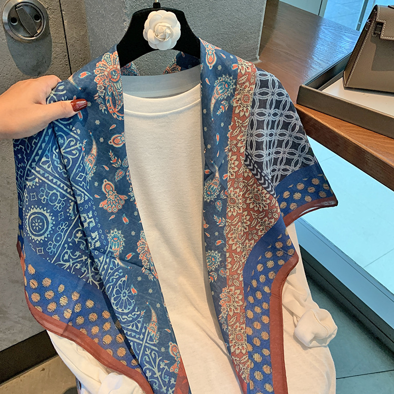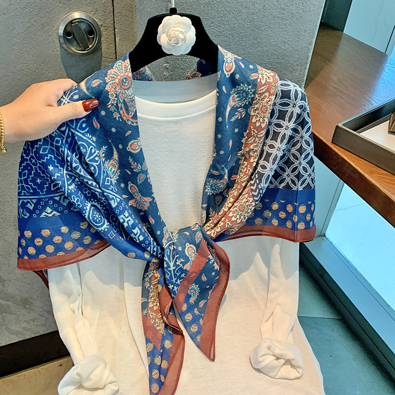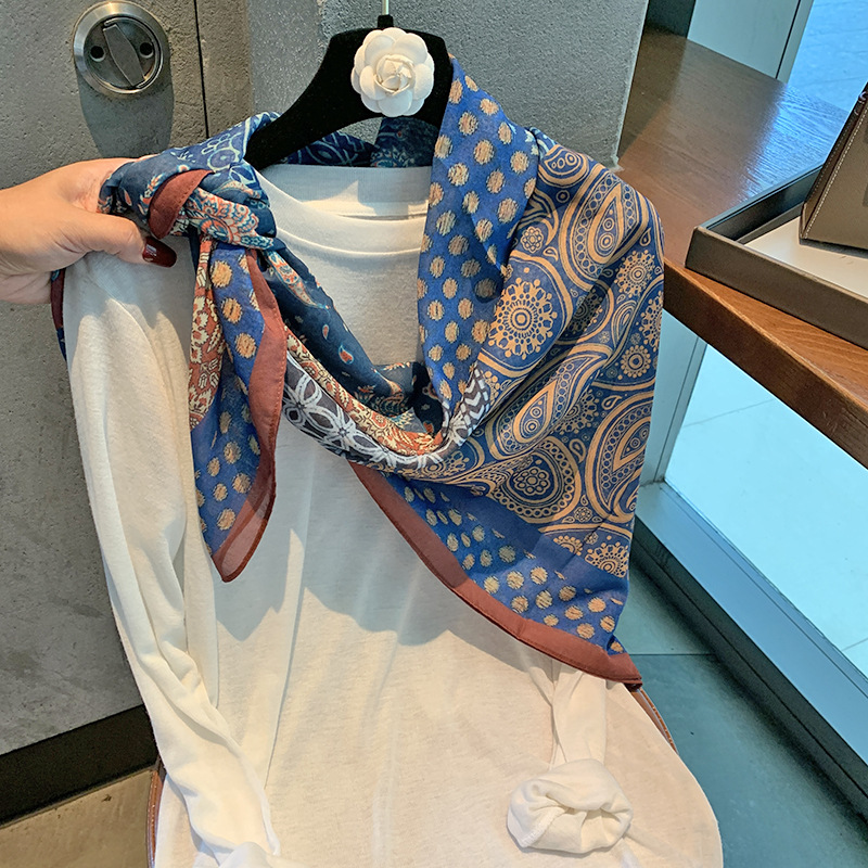 여성을 위한 봄 여름 다용도 실크 코튼 스퀘어 스카프, 복고풍 문학 유화 꽃무늬 실크 스카프, 패셔너블한 스카프, 고급 액세서리 스카프