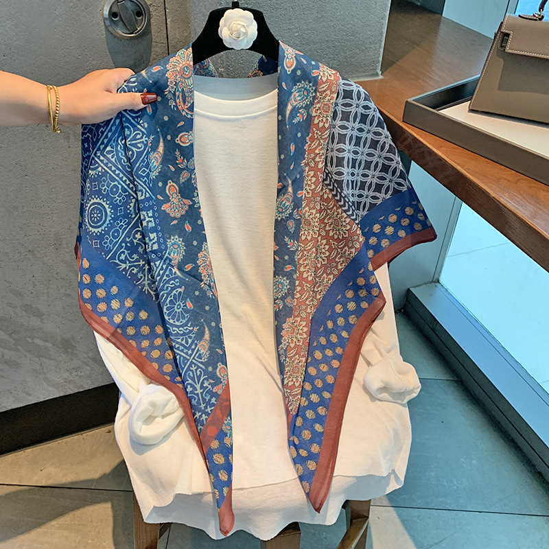 여성을 위한 봄 여름 다용도 실크 코튼 스퀘어 스카프, 복고풍 문학 유화 꽃무늬 실크 스카프, 패셔너블한 스카프, 고급 액세서리 스카프스토어 가기