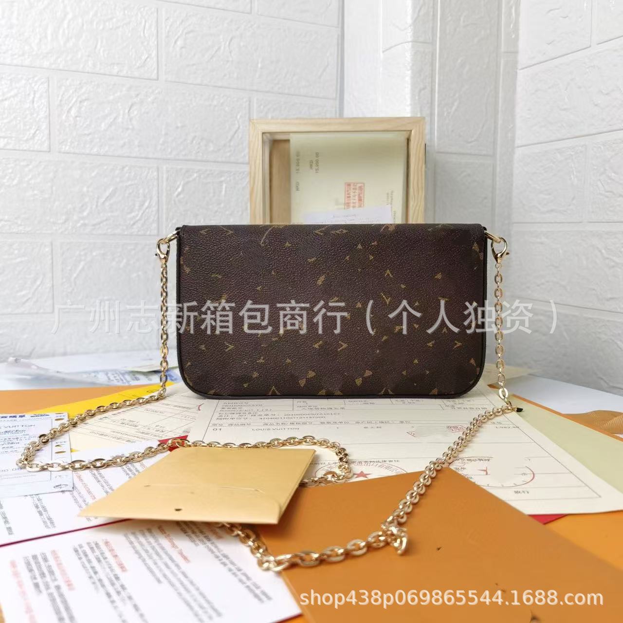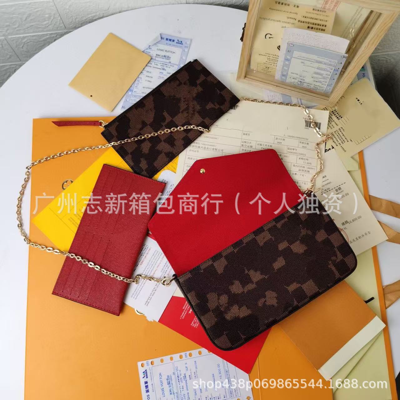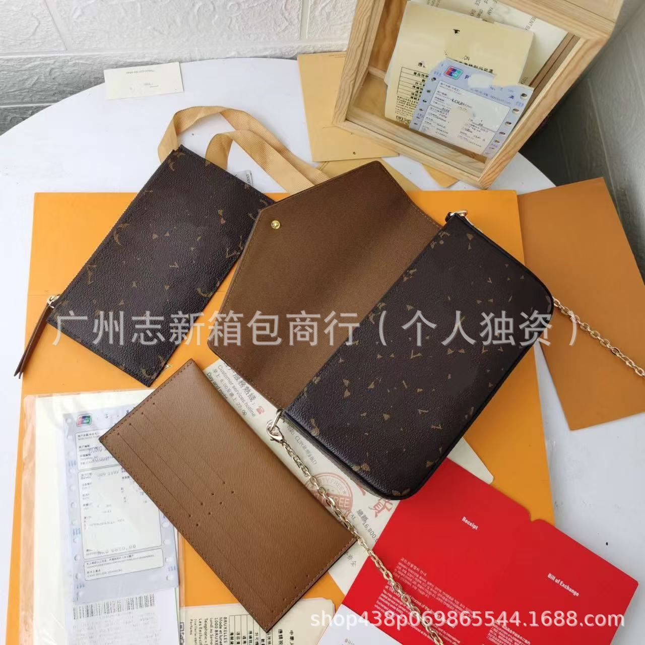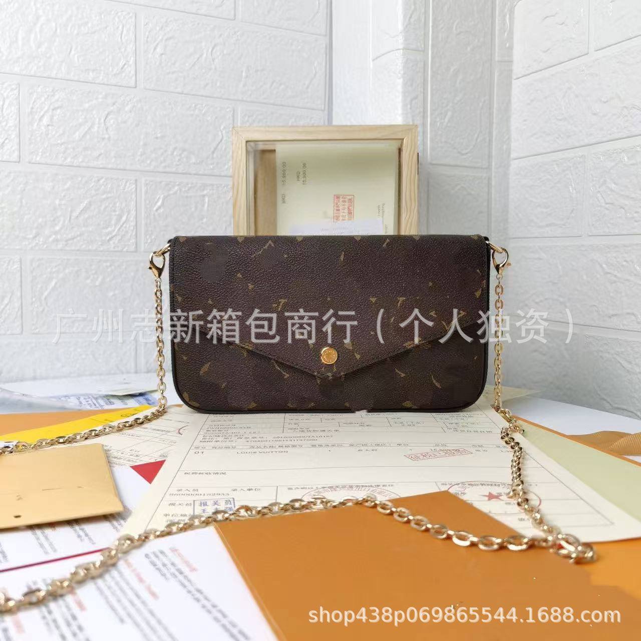 클래식 체인 겨드랑이 가방, 마작 가방, 노안 3종 세트, 프린트 3-in-1 봉투 가방, 천연 가죽, 다재다능하고 패셔너블함스토어 가기