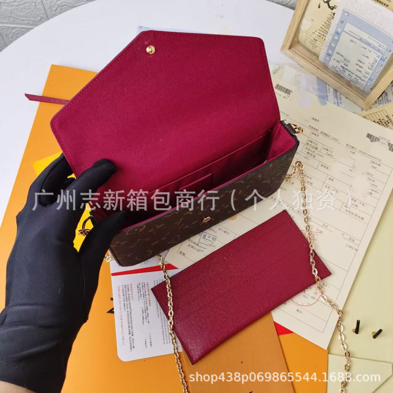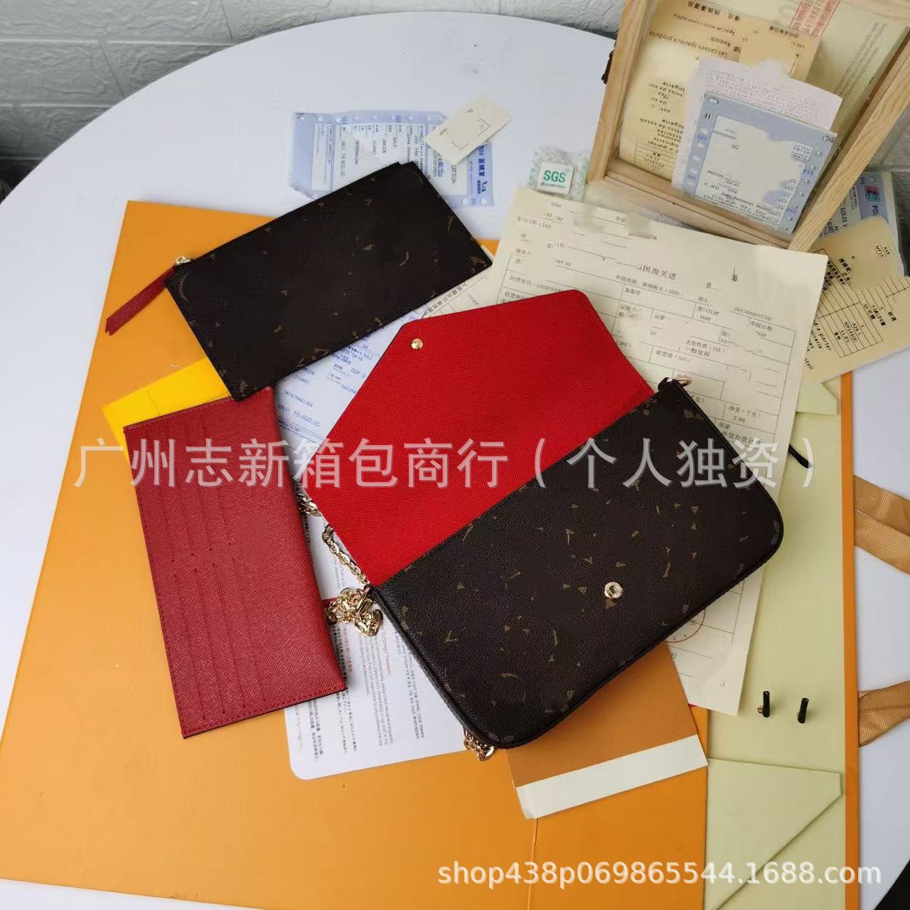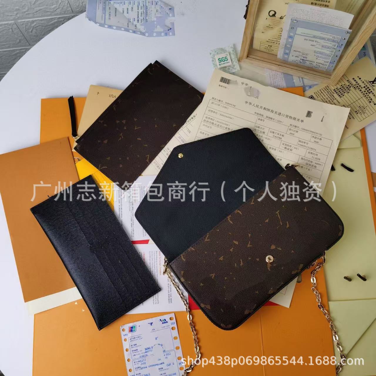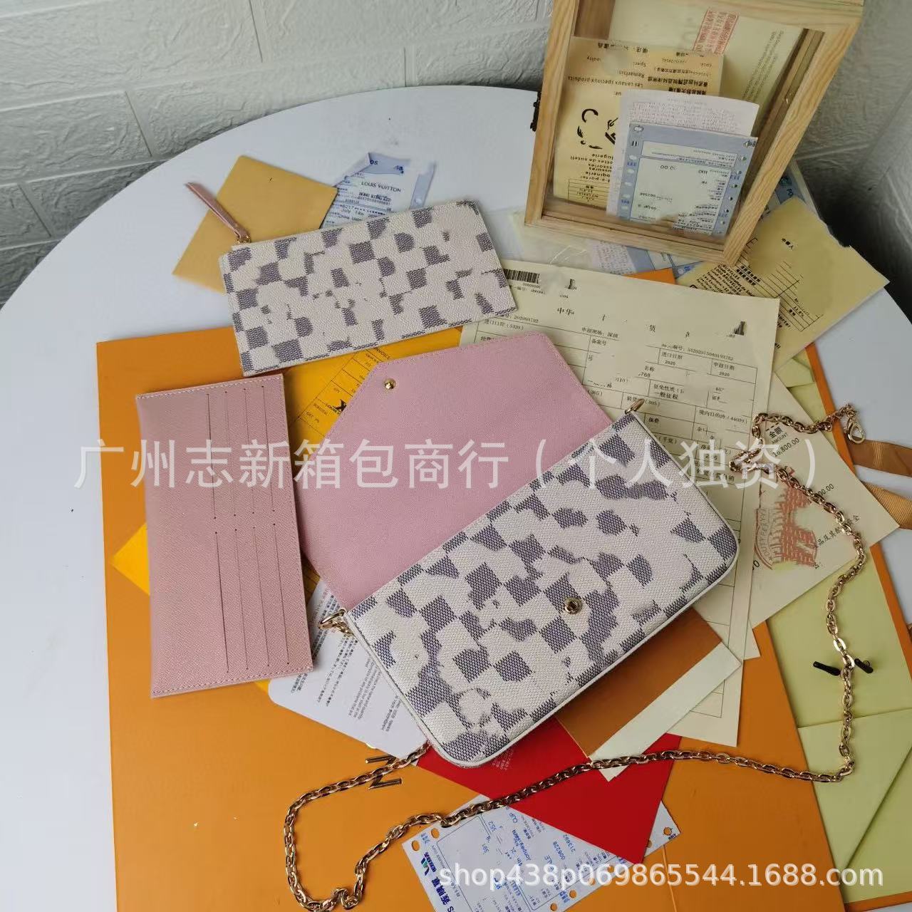클래식 체인 겨드랑이 가방, 마작 가방, 노안 3종 세트, 프린트 3-in-1 봉투 가방, 천연 가죽, 다재다능하고 패셔너블함스토어 가기