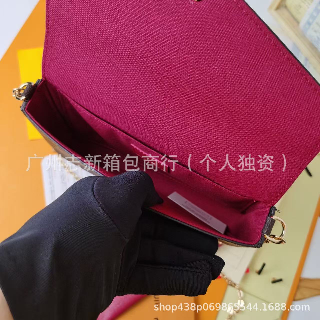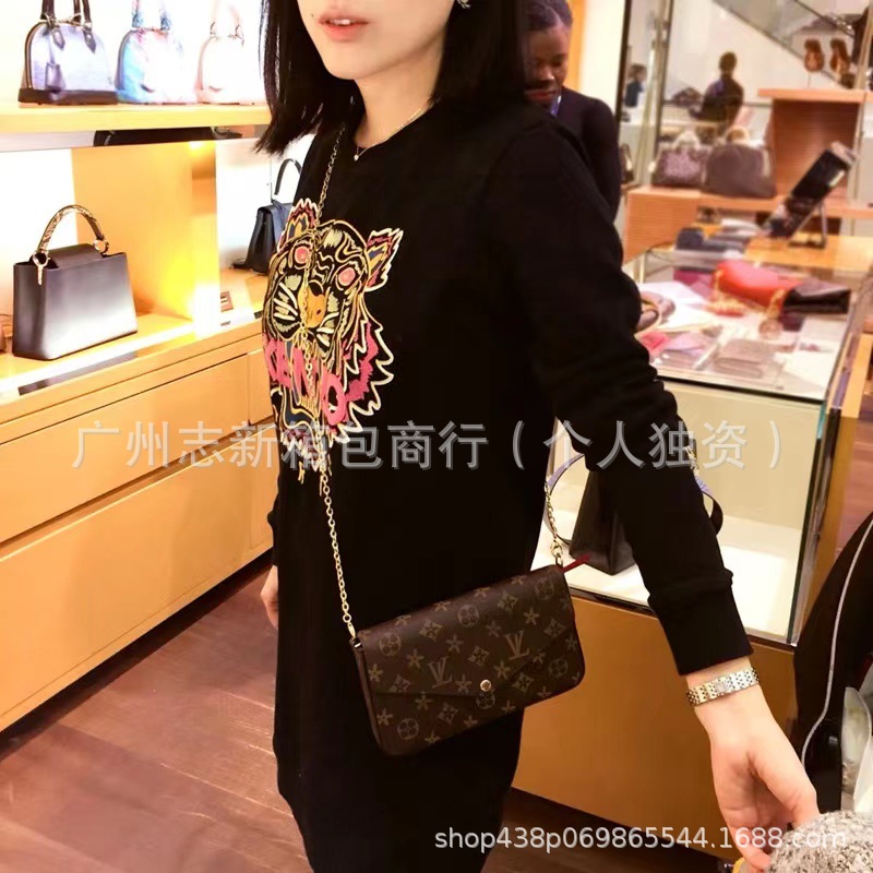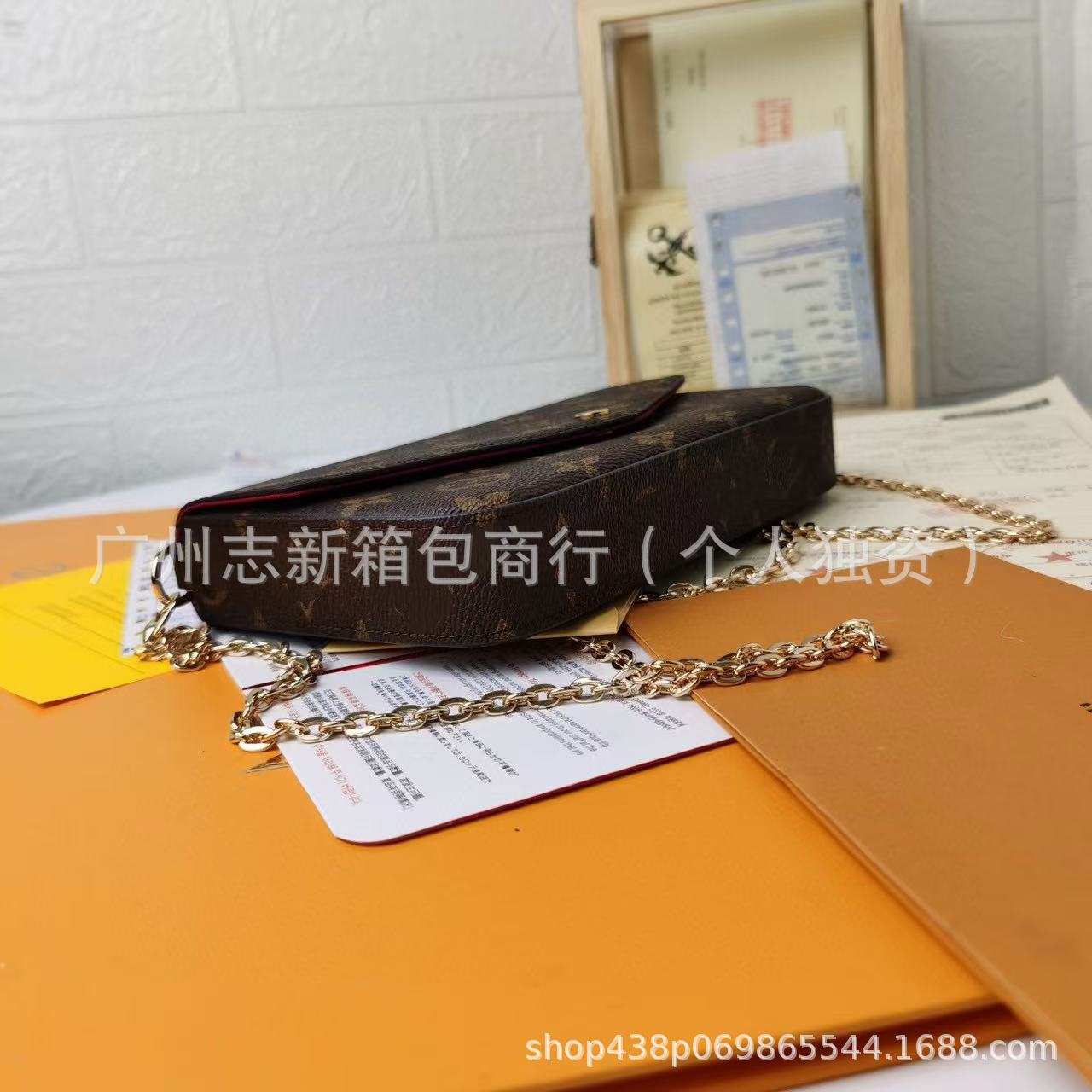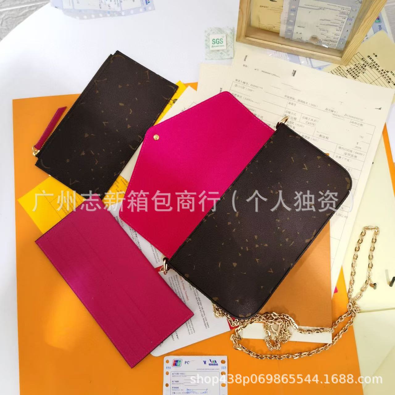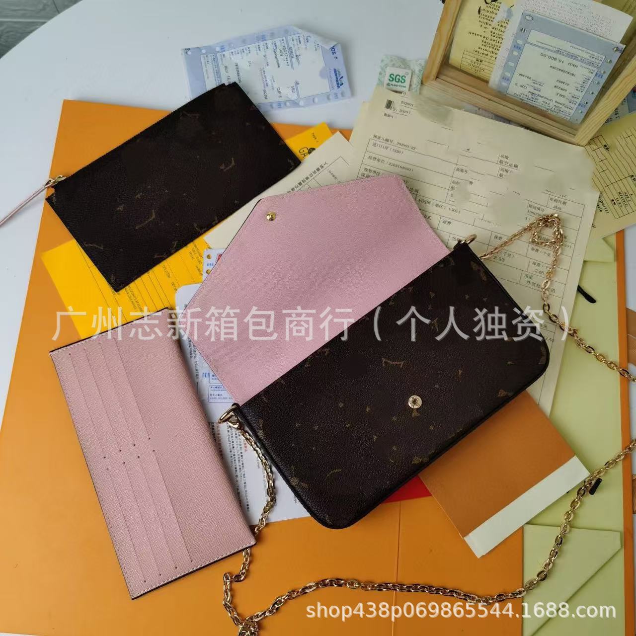 클래식 체인 겨드랑이 가방, 마작 가방, 노안 3종 세트, 프린트 3-in-1 봉투 가방, 천연 가죽, 다재다능하고 패셔너블함스토어 가기