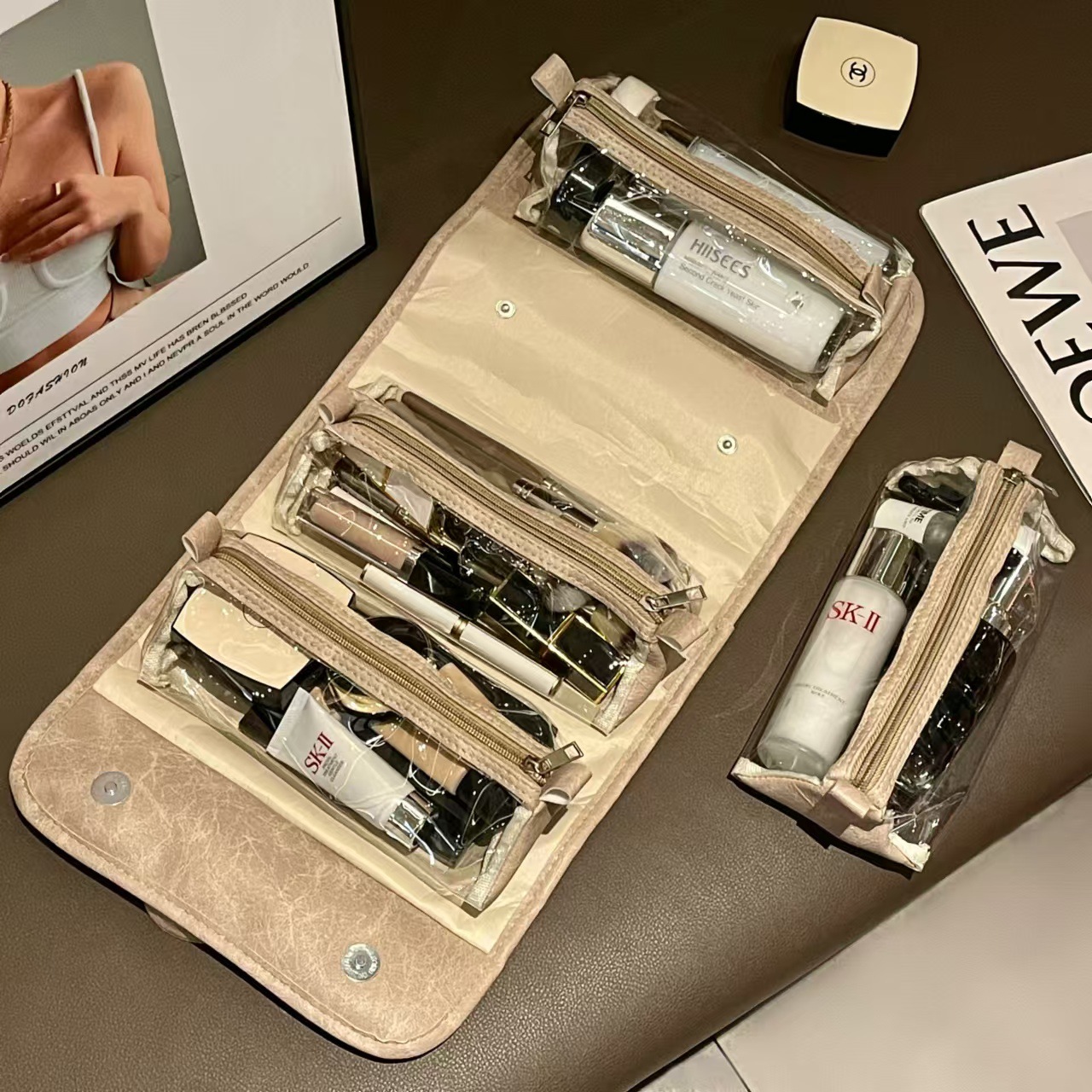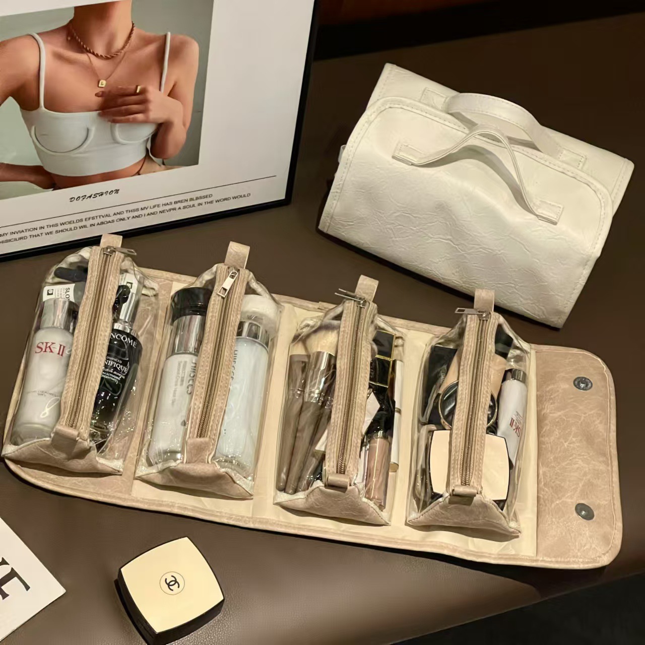 2025 새로운 4-in-1 화장품 가방 휴대용 대용량 스킨 케어 제품 보관 가방 접이식 여행 및 출장