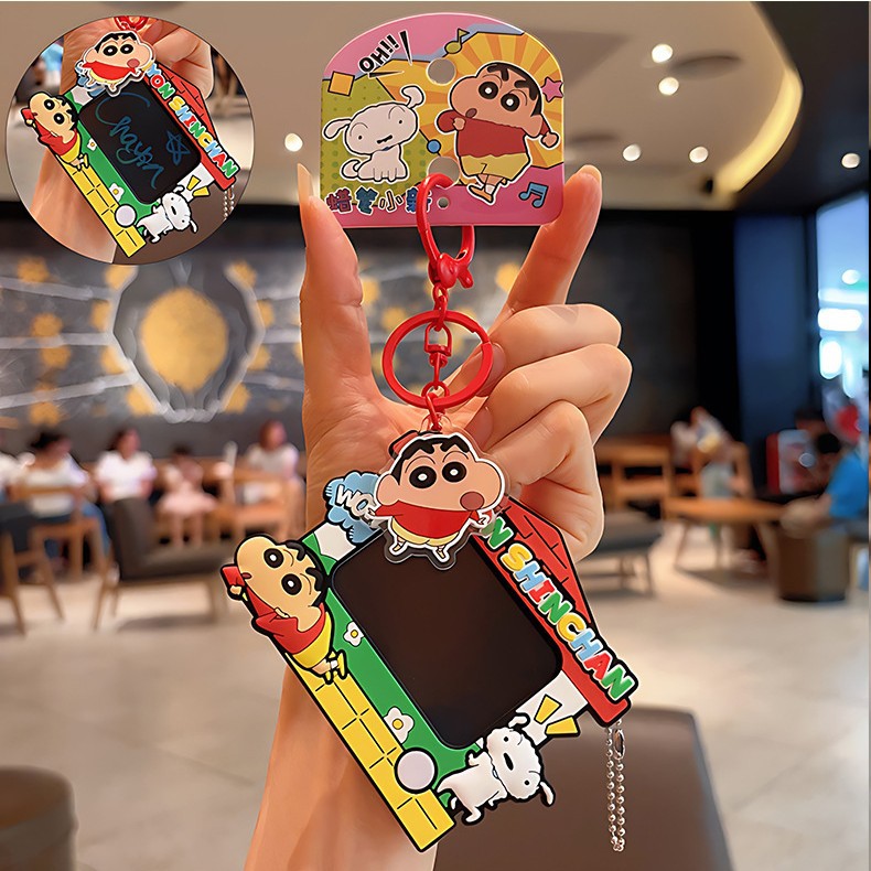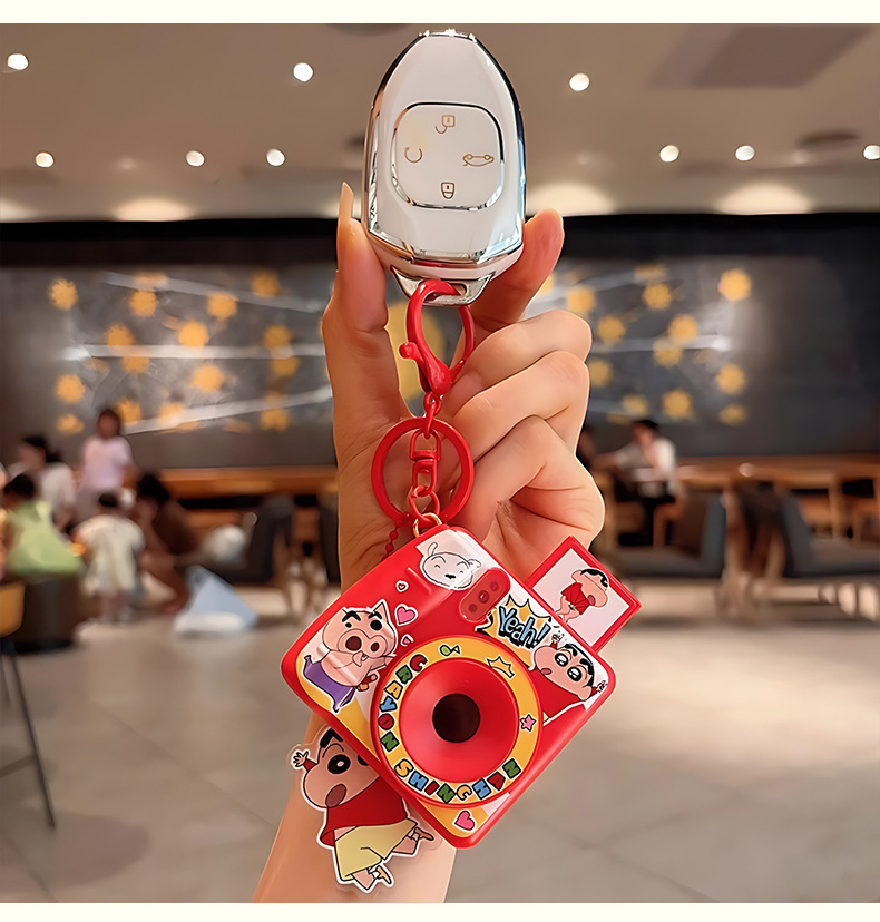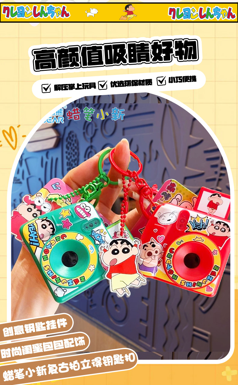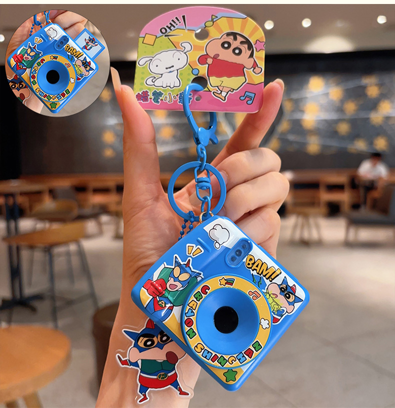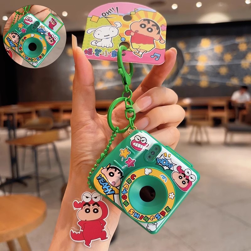 정품 크레용 신짱 복고풍 폴라로이드 키 체인 애니메이션 주변 장치 자동차 키 체인 여성 귀여운 학교 가방 간단한스토어 가기
