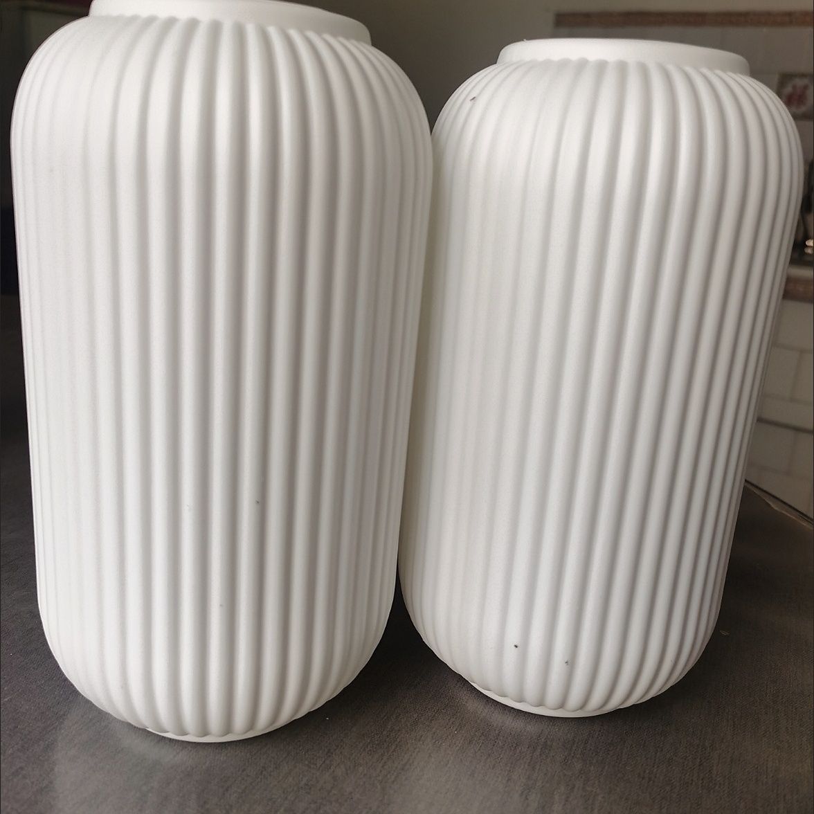 흰색 수직 패턴 모조 세라믹 꽃병 꽃꽂이 현대 간단한 랜턴 플라스틱 꽃병 사무실 홈 장식품 꽃 용기 물 저장