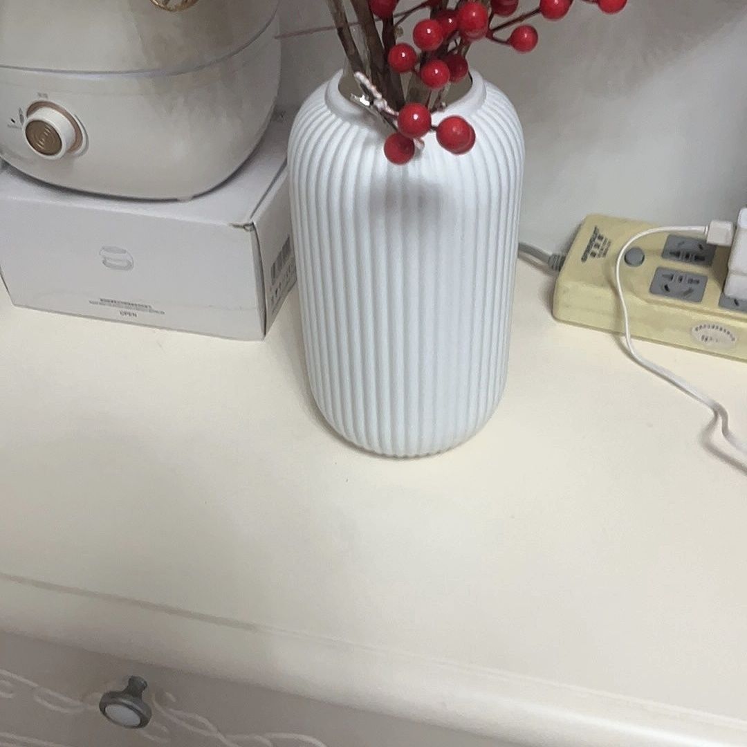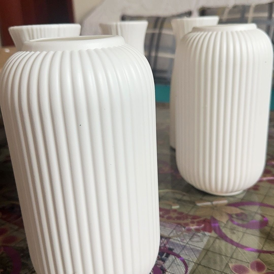 흰색 수직 패턴 모조 세라믹 꽃병 꽃꽂이 현대 간단한 랜턴 플라스틱 꽃병 사무실 홈 장식품 꽃 용기 물 저장스토어 가기