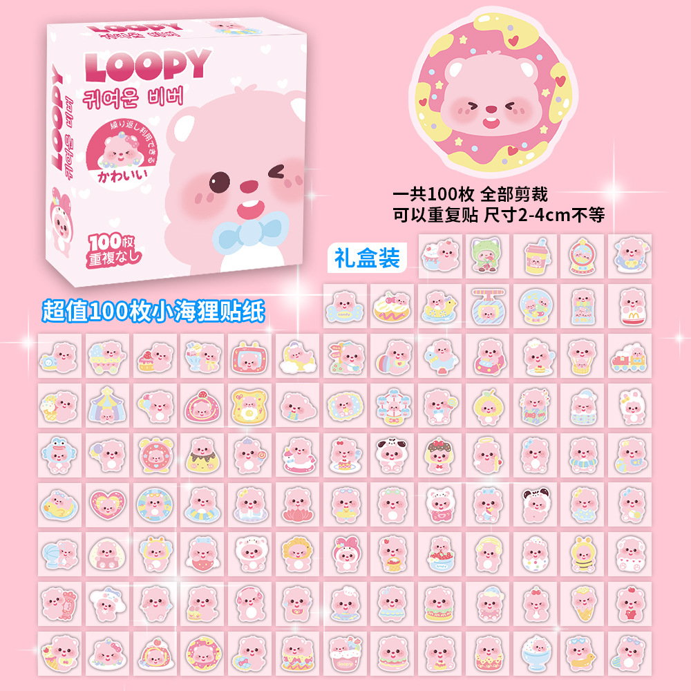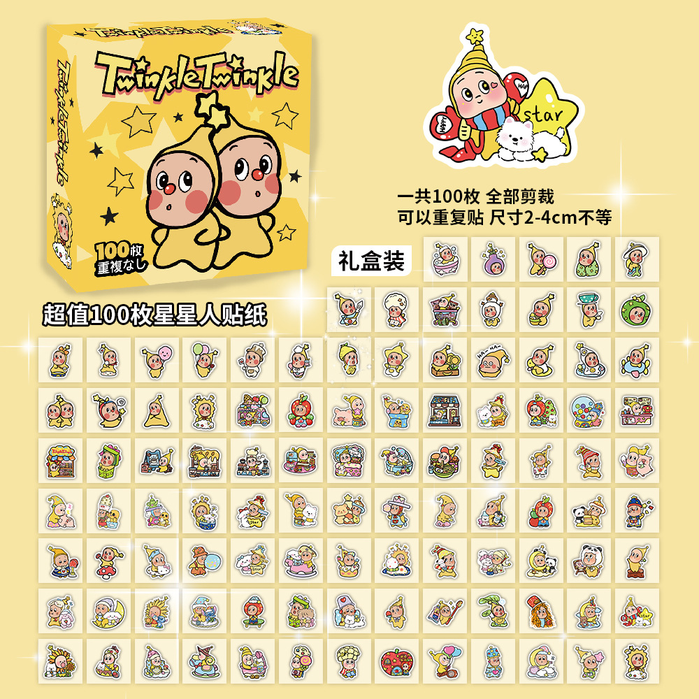 100장 박스 포장 스타 남자아이 여자아이 스티커, 텍스트 이모티콘, 카피바라, 2차원, 산리오 스티커스토어 가기