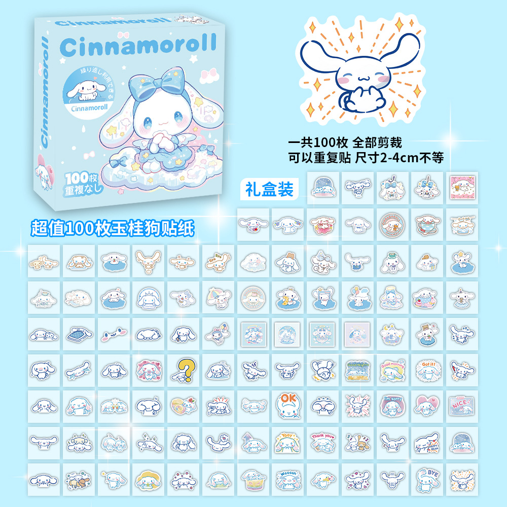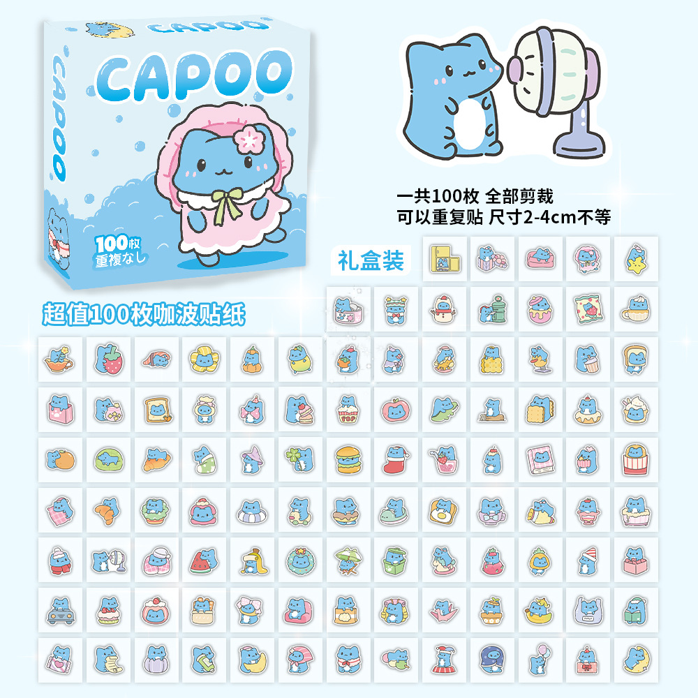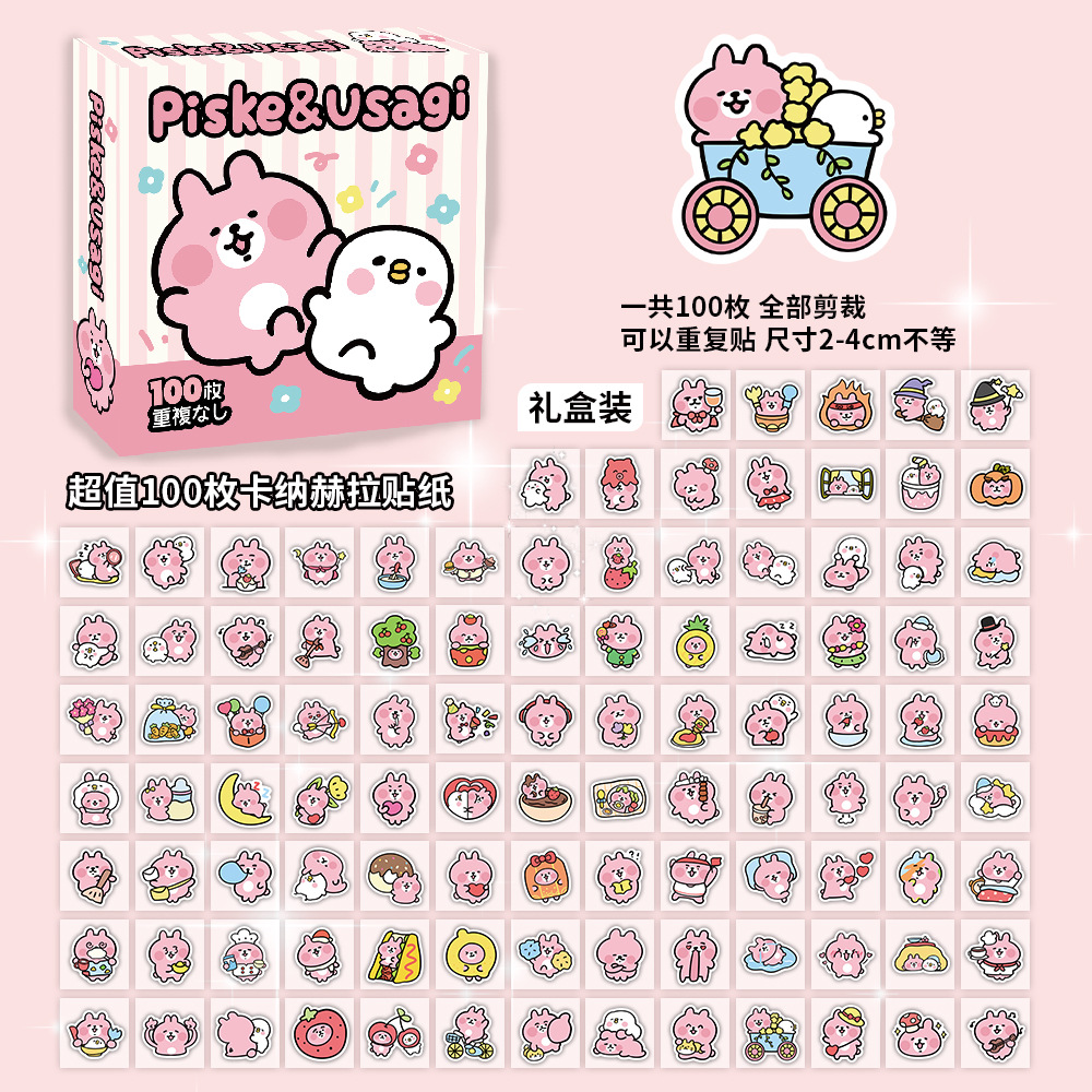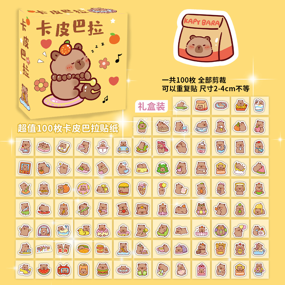100장 박스 포장 스타 남자아이 여자아이 스티커, 텍스트 이모티콘, 카피바라, 2차원, 산리오 스티커