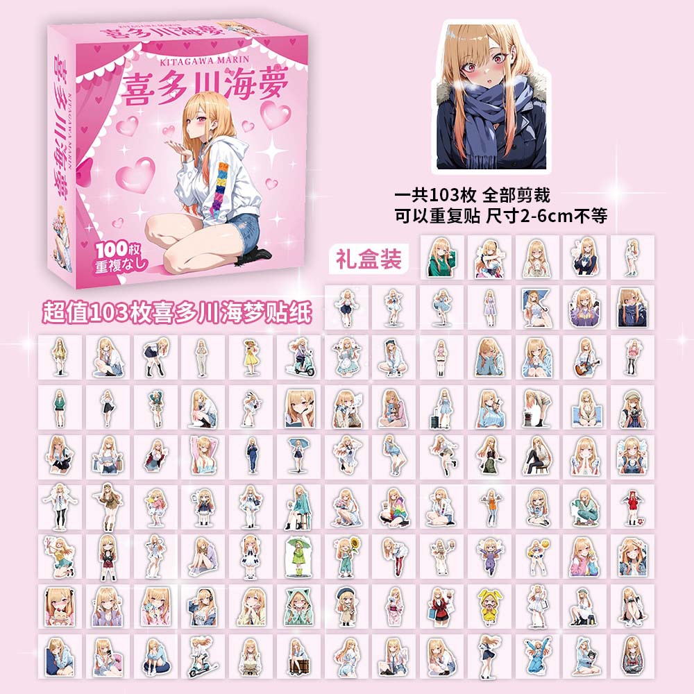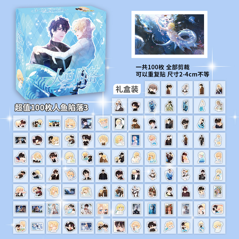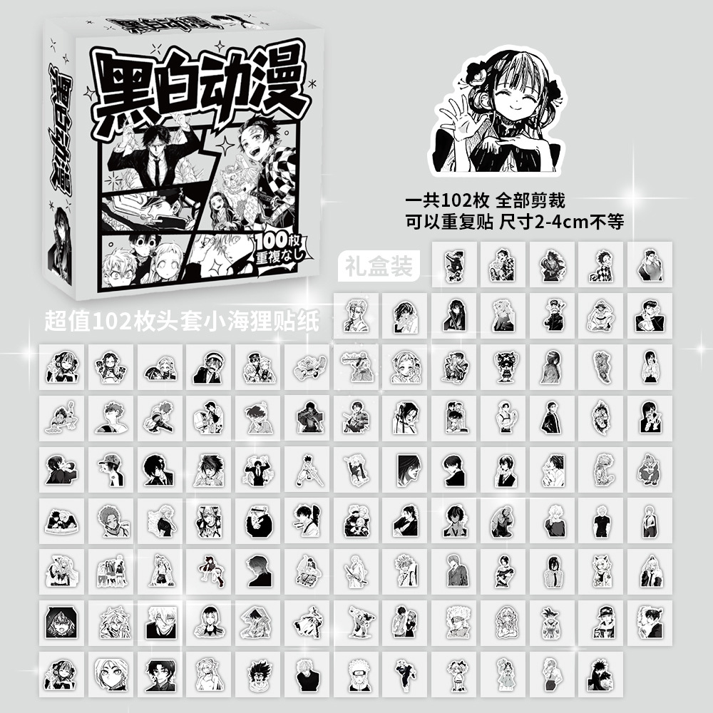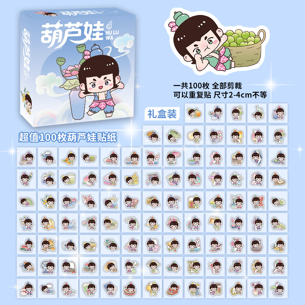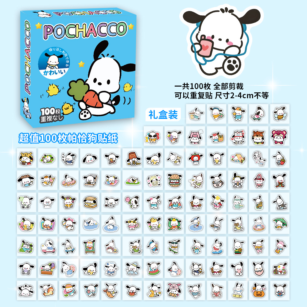 100장 박스 포장 스타 남자아이 여자아이 스티커, 텍스트 이모티콘, 카피바라, 2차원, 산리오 스티커