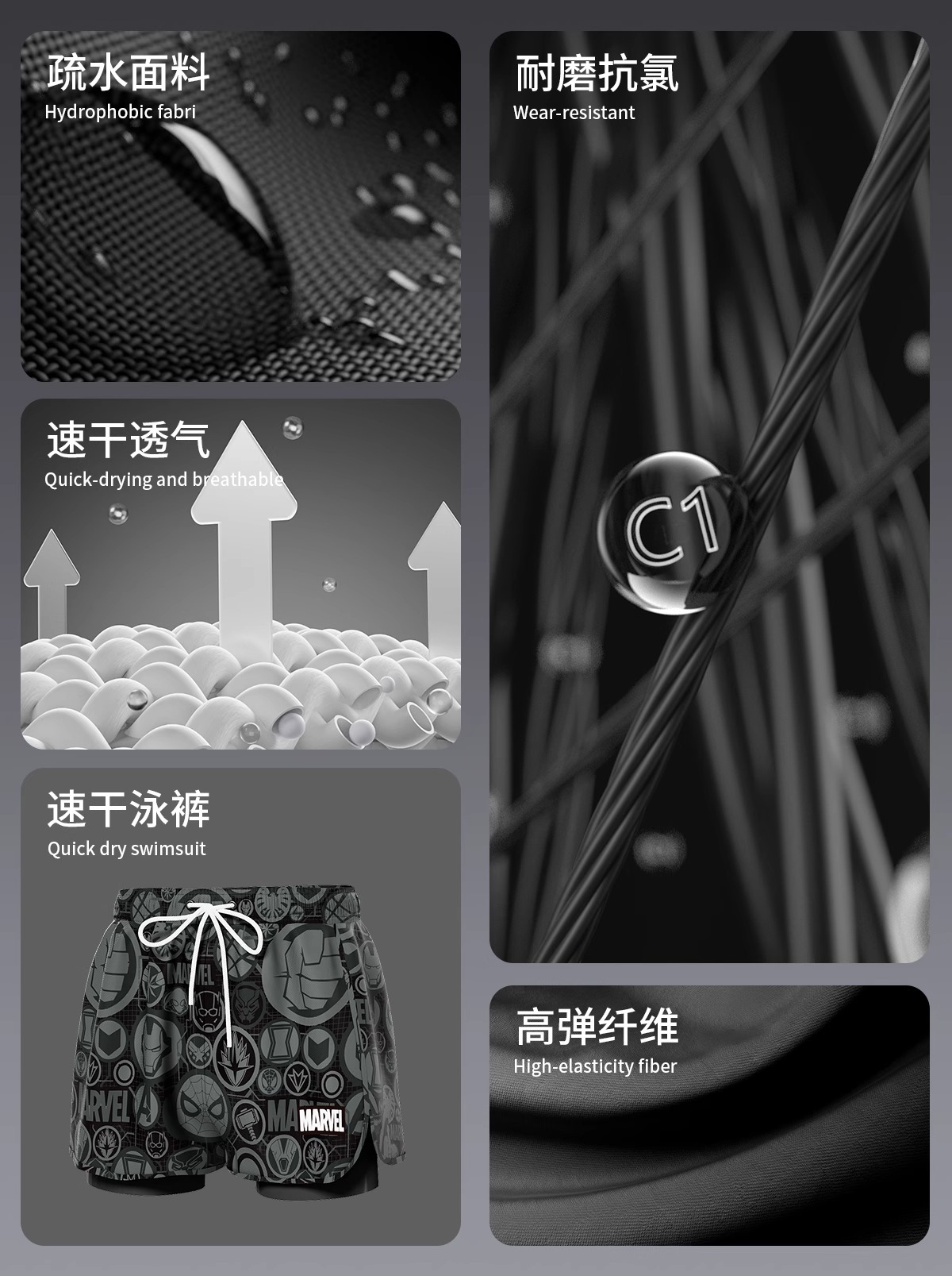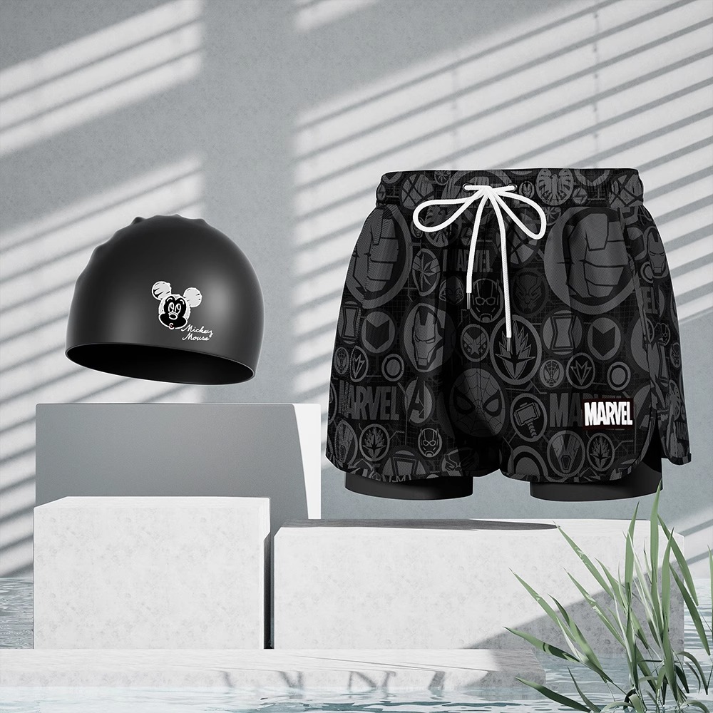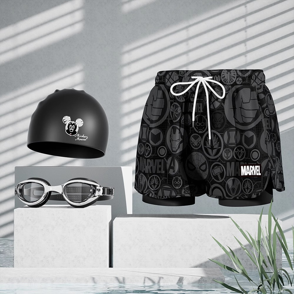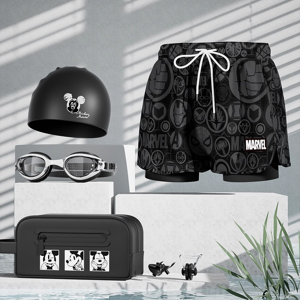 디즈니 수영복 남성용 3점 수영복, 수영모, 수영고글, 3피스 수영복, 온천, 당황 방지