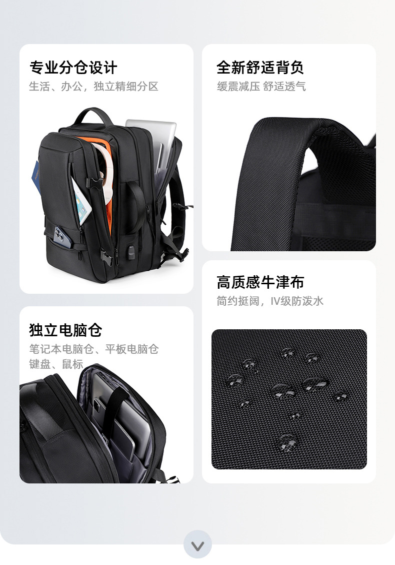 확장 가능한 비즈니스 패션 컴퓨터 가방 대용량 간단한 학생 학교 가방 남성 출장 단거리 여행 배낭