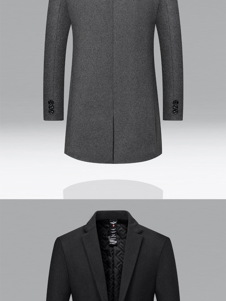 가을, 겨울 중간 길이 모직 코트 남성 중년 패션 캐주얼 모직 코트 2025 남성용 새로운 윈드 브레이커