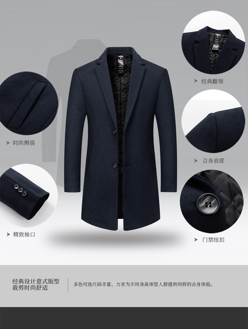 가을, 겨울 중간 길이 모직 코트 남성 중년 패션 캐주얼 모직 코트 2025 남성용 새로운 윈드 브레이커스토어 가기