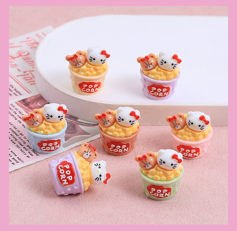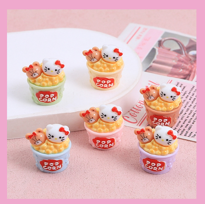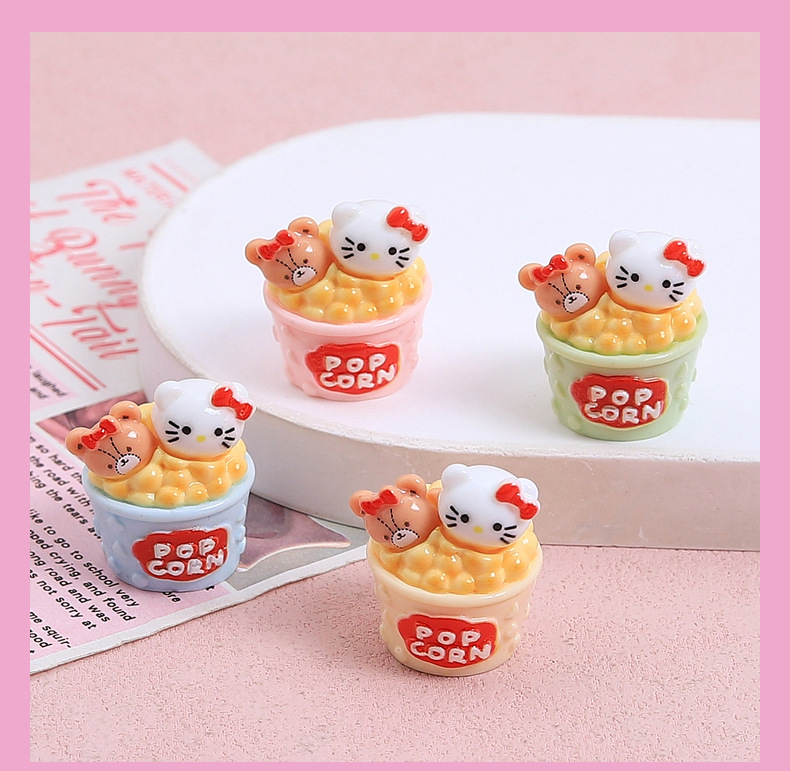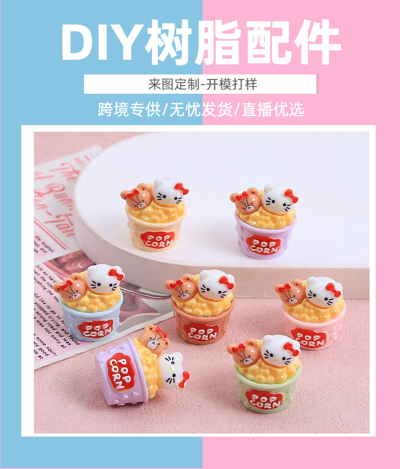 입체 붉은 팬더 고양이 팝콘 크리 에이 티브 수제 diy 크림 접착제 수지 작은 액세서리 구멍 신발 버클 재료 패키지