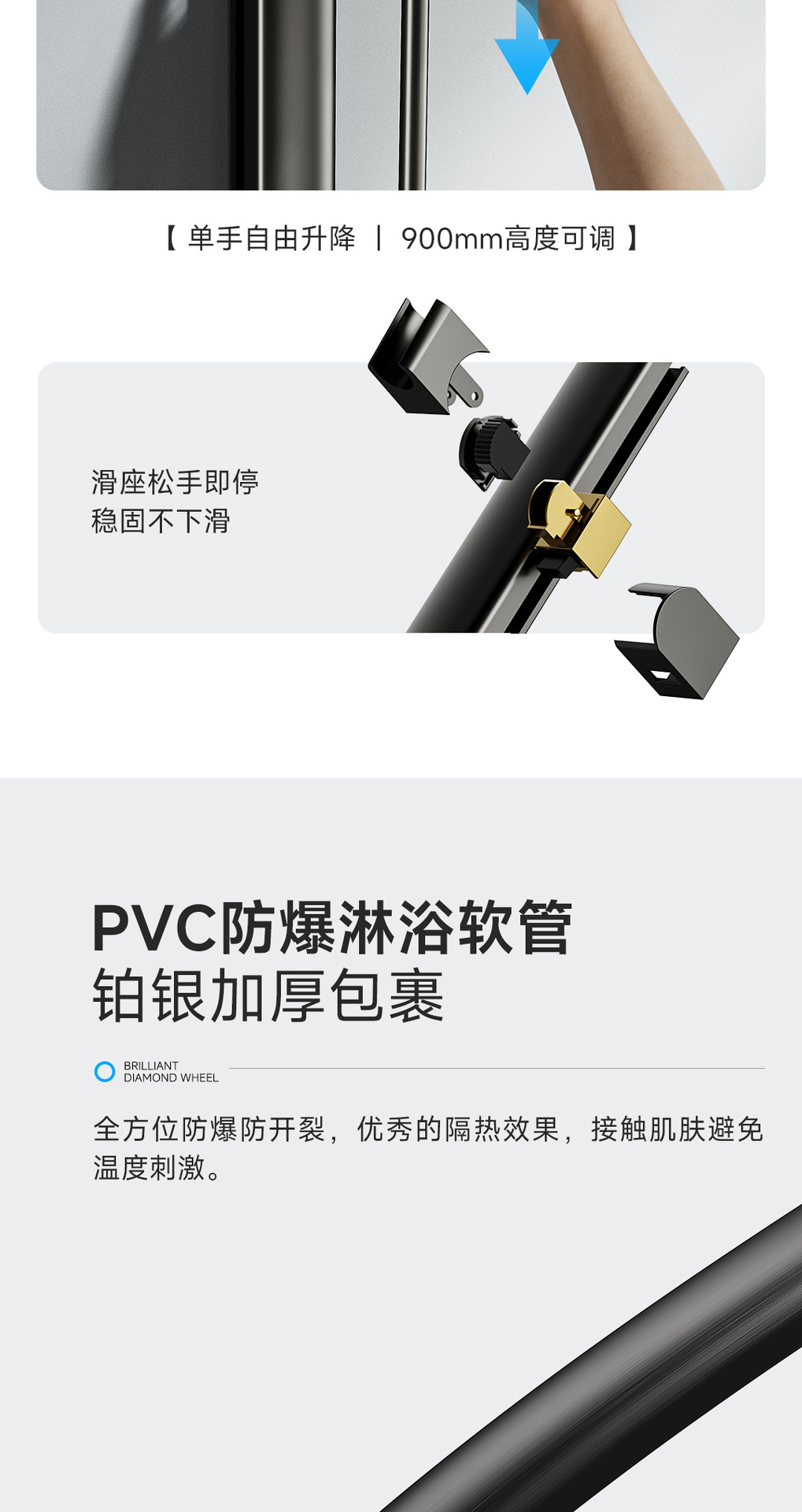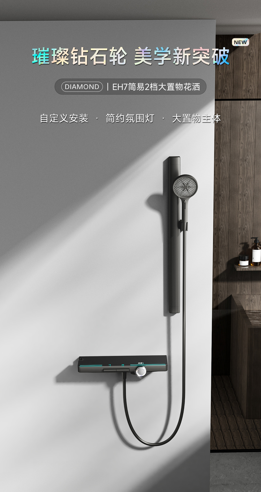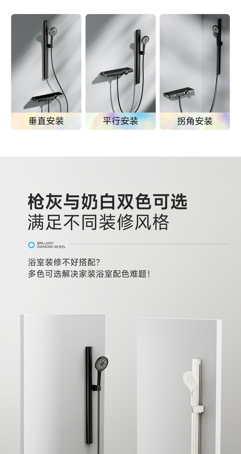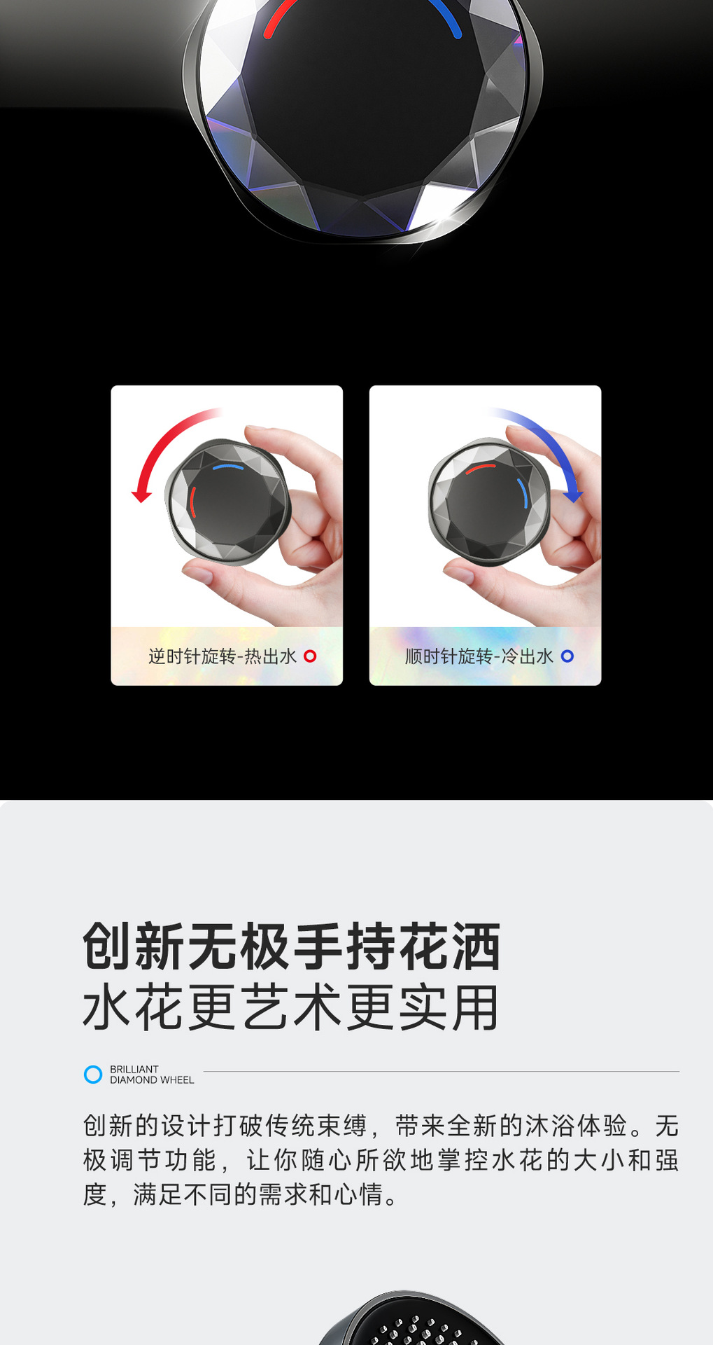 리야 브릴리언트 다이아몬드 휠 2단 샤워 헤드 세트, 분위기 있는 대용량 샤워 헤드, 표면 장착형 심플 샤워 헤드