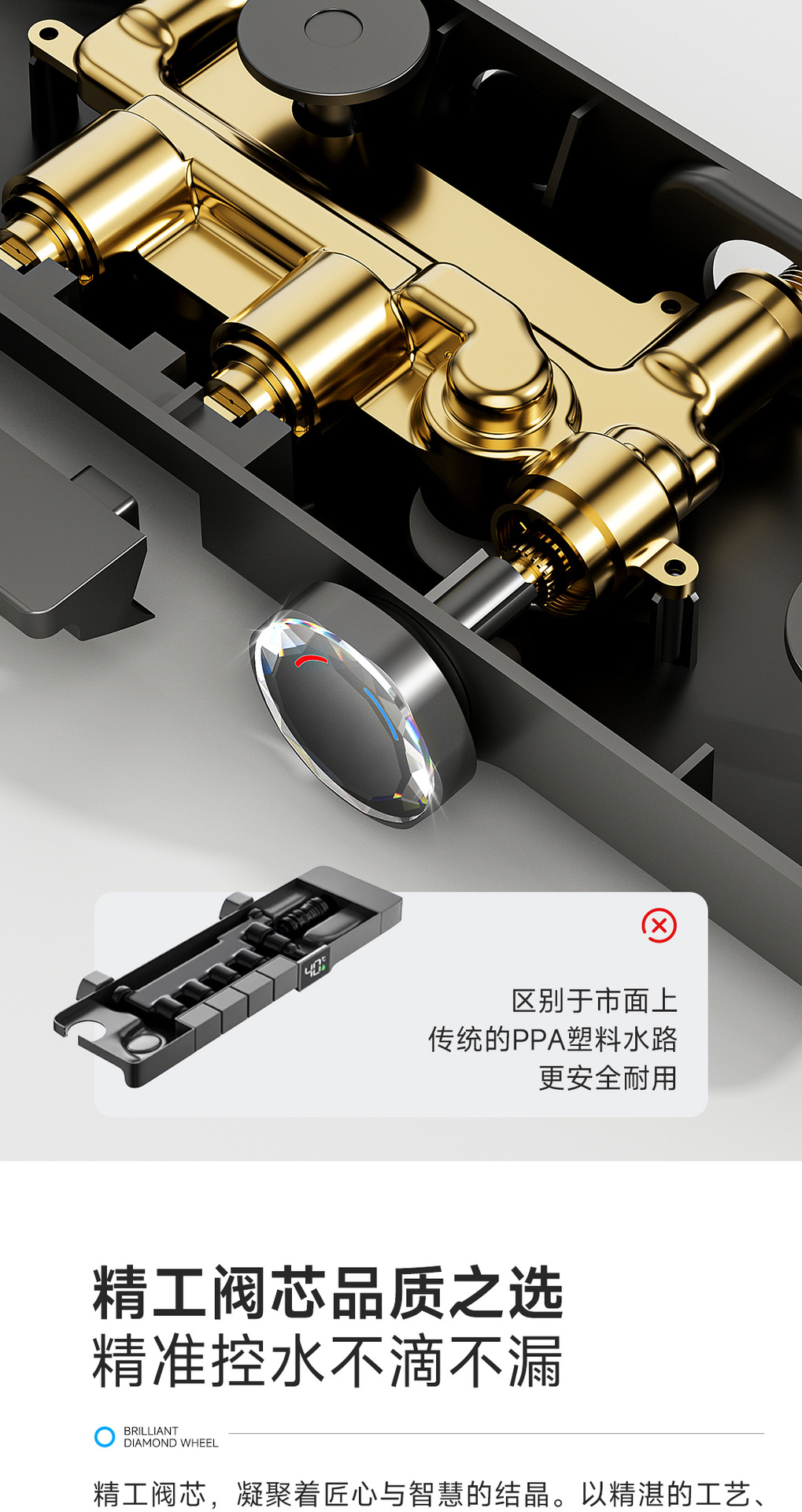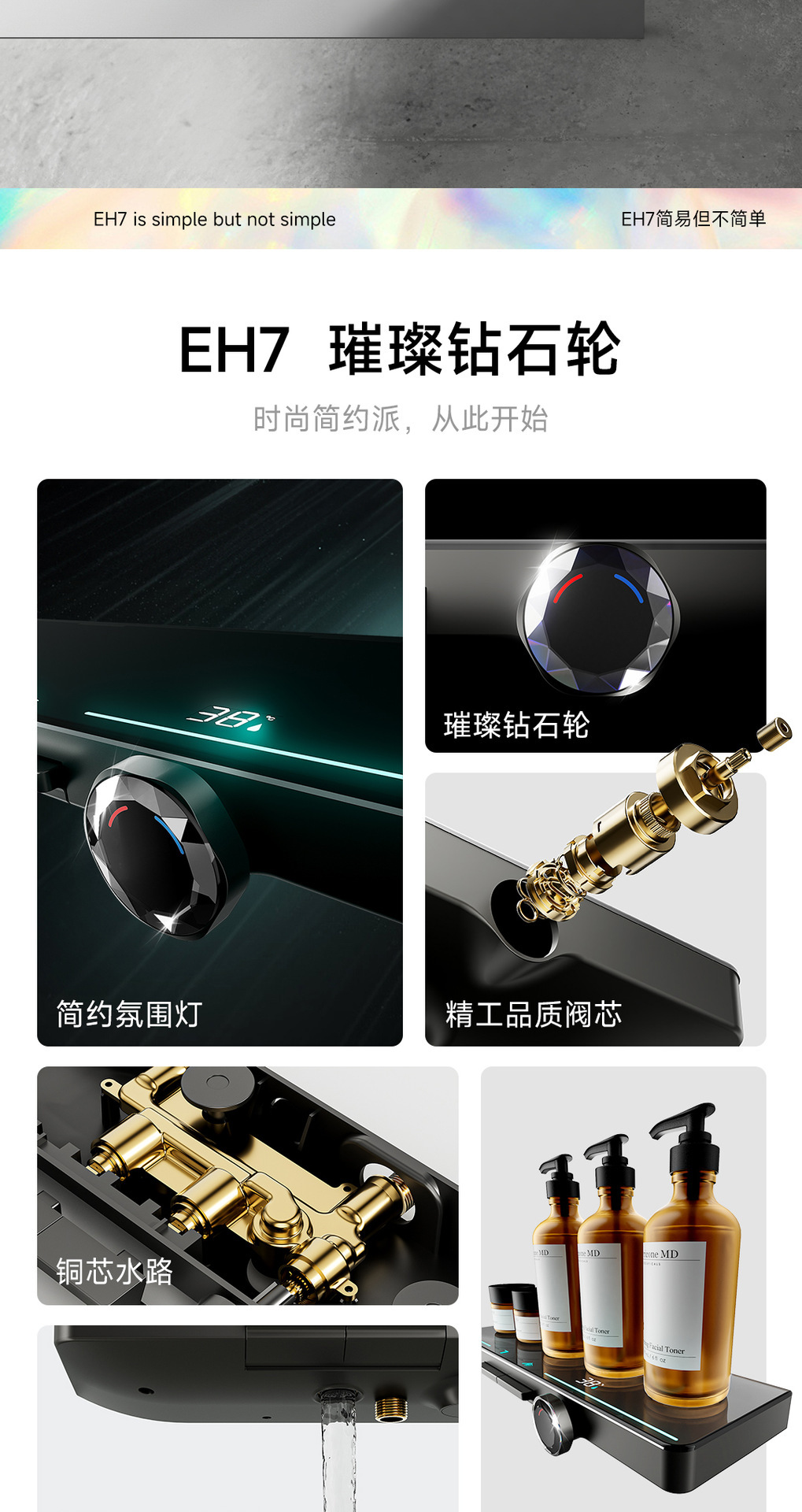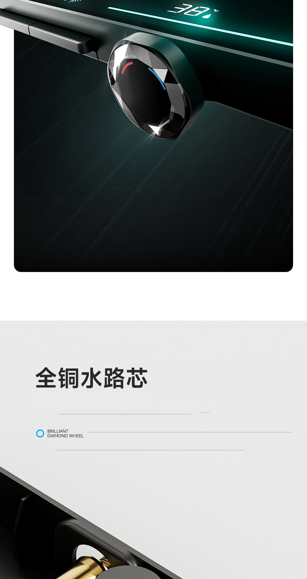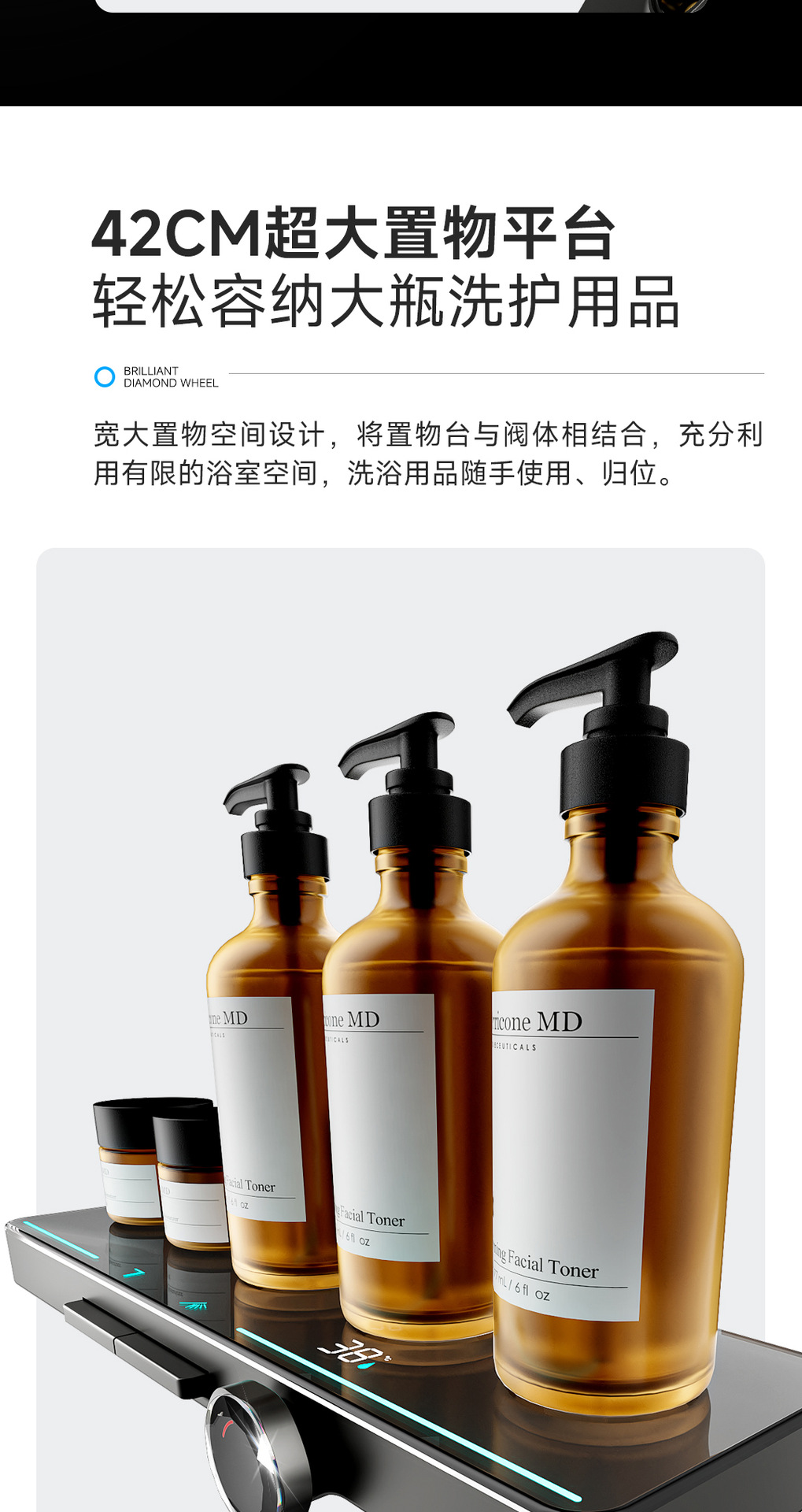 리야 브릴리언트 다이아몬드 휠 2단 샤워 헤드 세트, 분위기 있는 대용량 샤워 헤드, 표면 장착형 심플 샤워 헤드